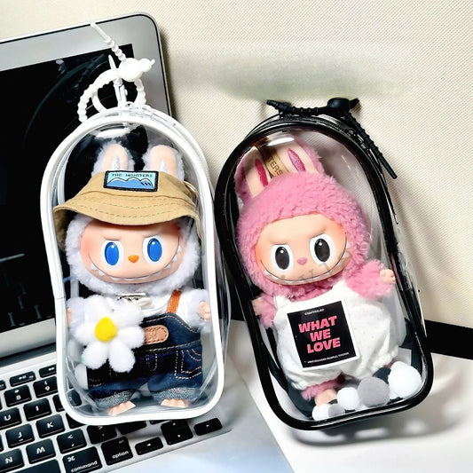 Colorful Transparent Protector Case Organizer Box for 15-17cm Ropa Labubu Outdoor Display Bag With Keychain Doll Accessories