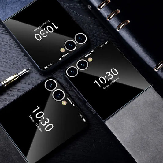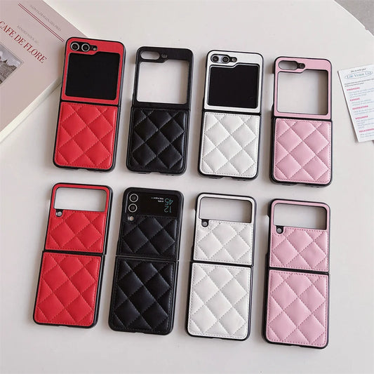 Luxury PU Leather Phone Case For Samsung Galaxy Z Flip Fold 7 Fe 6 5 4 3 Classic Lambskin Texture Shockproof Silicone Back Cover