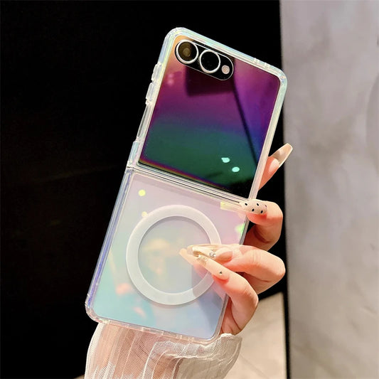 Gradient Aurora Rainbow Laser Magnetic for Magsafe Case for Samsung Galaxy Z Fold 7 6 5 4 3 ZFlip 7 6 5 4 3 Clear Colorful Cover