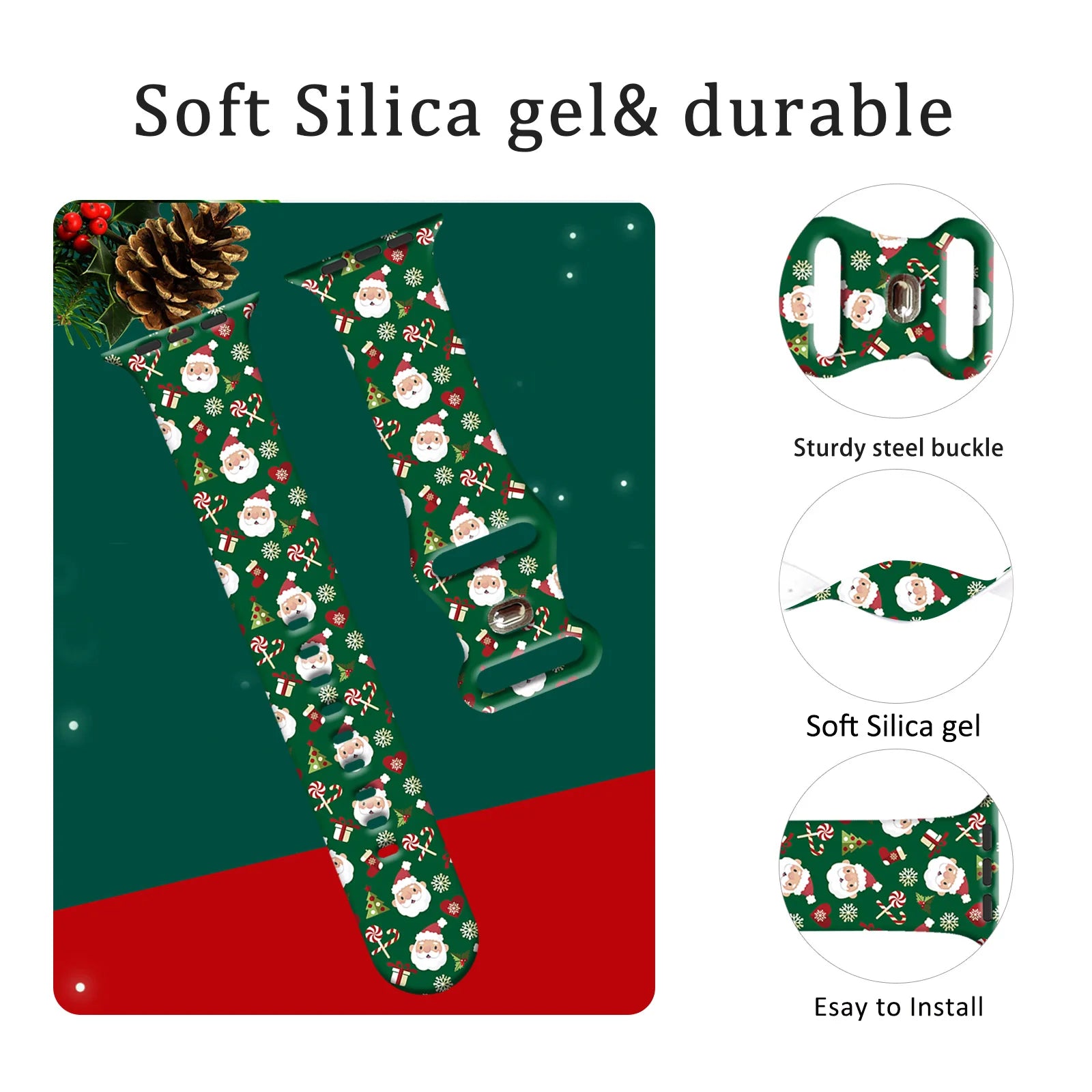 Colorful Christmas Series Strap for Apple Watch 11 10 9 8 7 SE Silicone Band Replacable Bracelet for iWatch 46mm 44mm 42mm 41mm