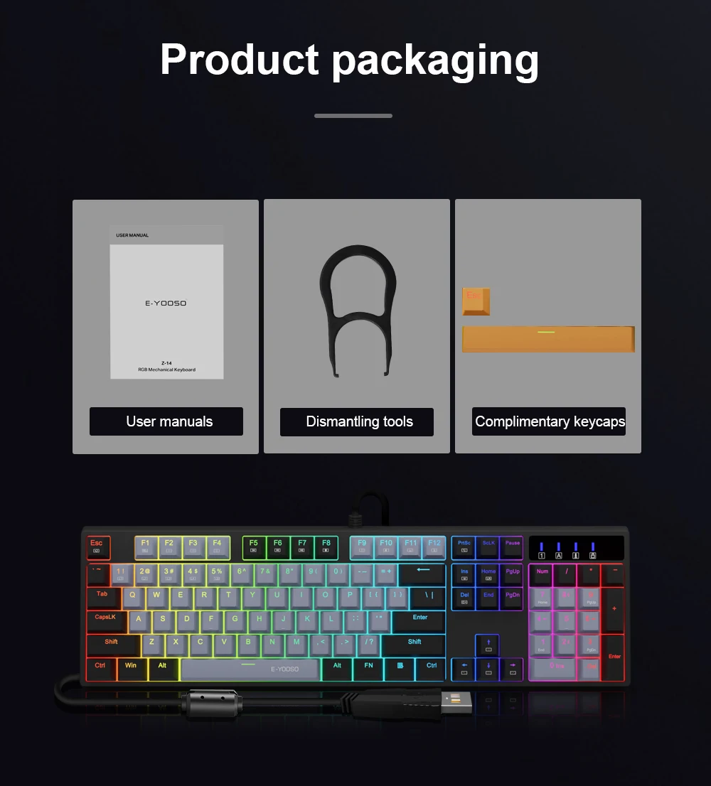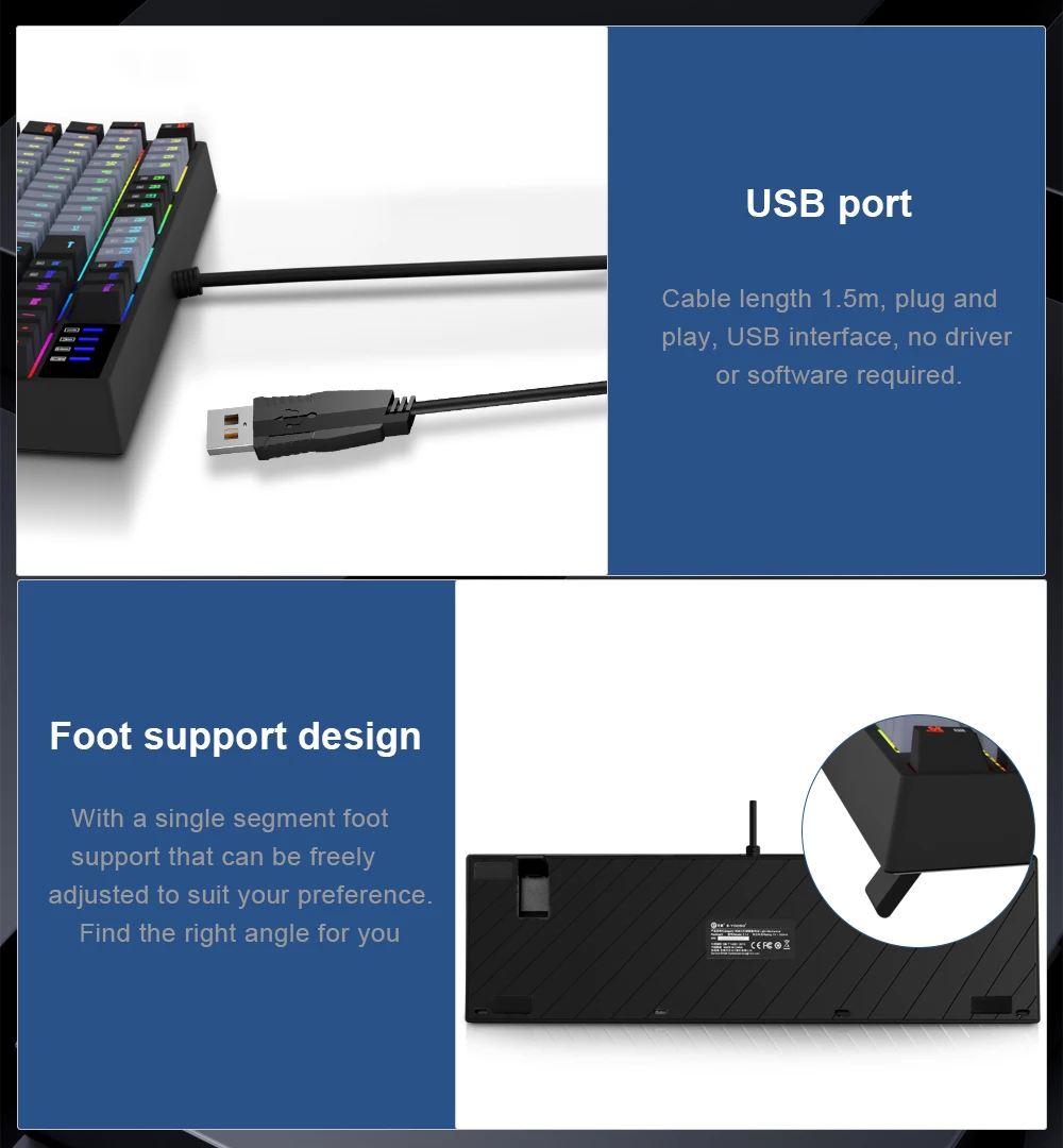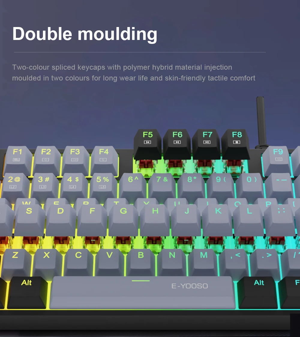 Extreme Durability: 50 million times keystroke test, small actuation force and short travel make it. Solid base with double injection ABS keycaps design, it is built to withstand a lifetime of gaming.