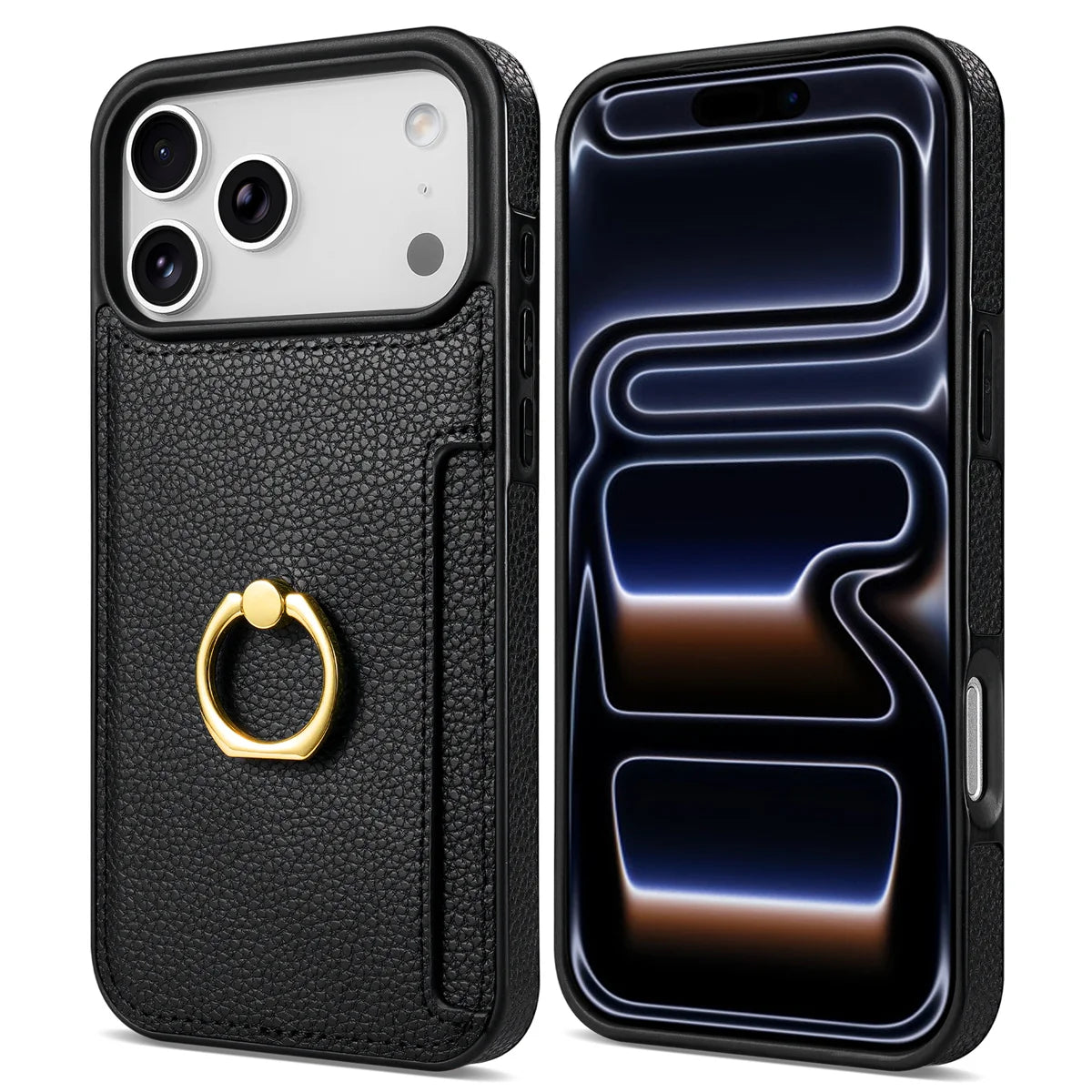 Leather Wallet Card Solt Phone Case for IPhone 11 12 13 14 15 Plus 16 17 Pro Max 17 Air 16E Ring Holder Protective Cover