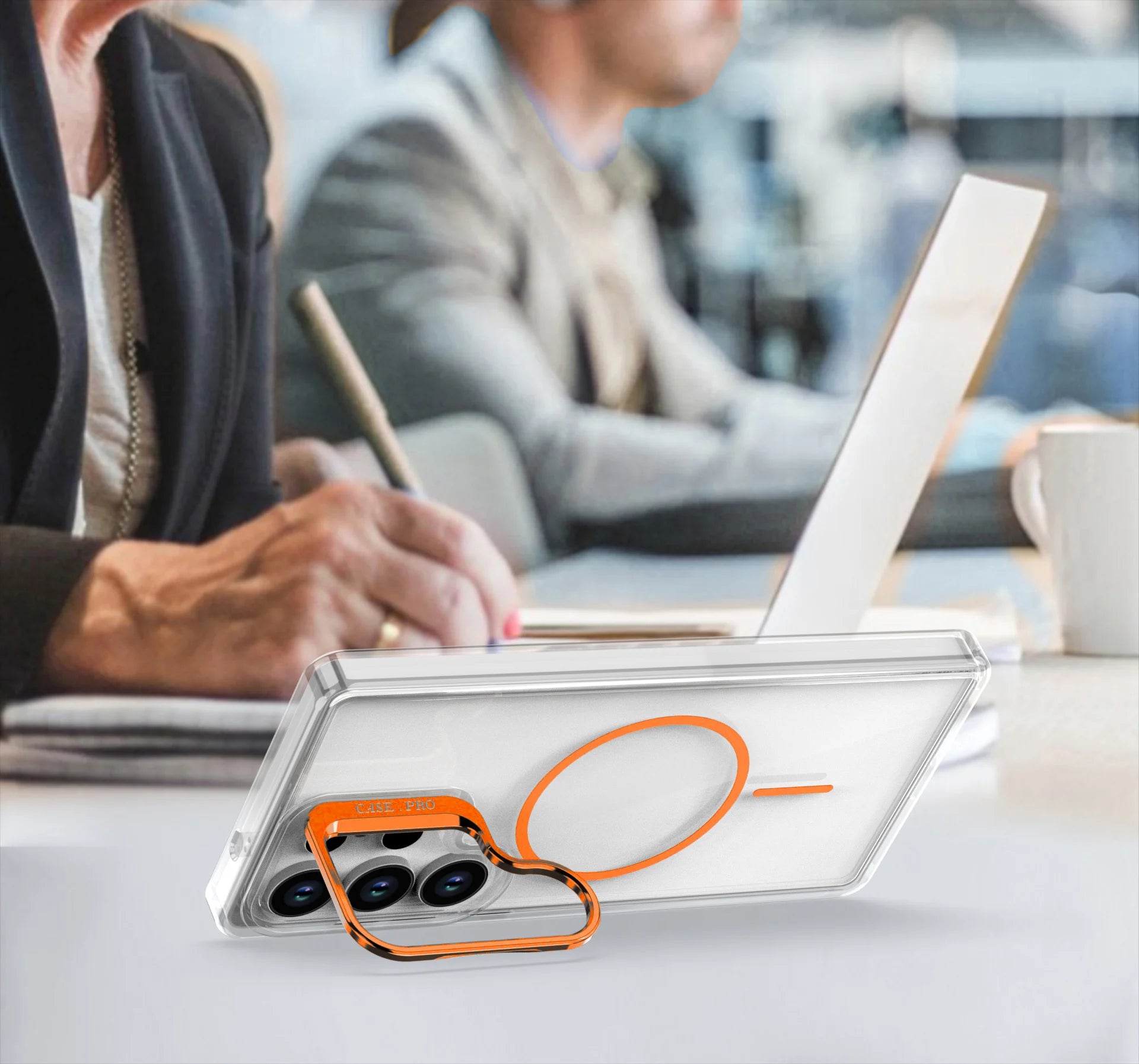 Model 2: Funda For Samsung Galaxy S25 Plus Camera Frame Folding Bracket Magnetic Charging Transparent Phone Case Cover