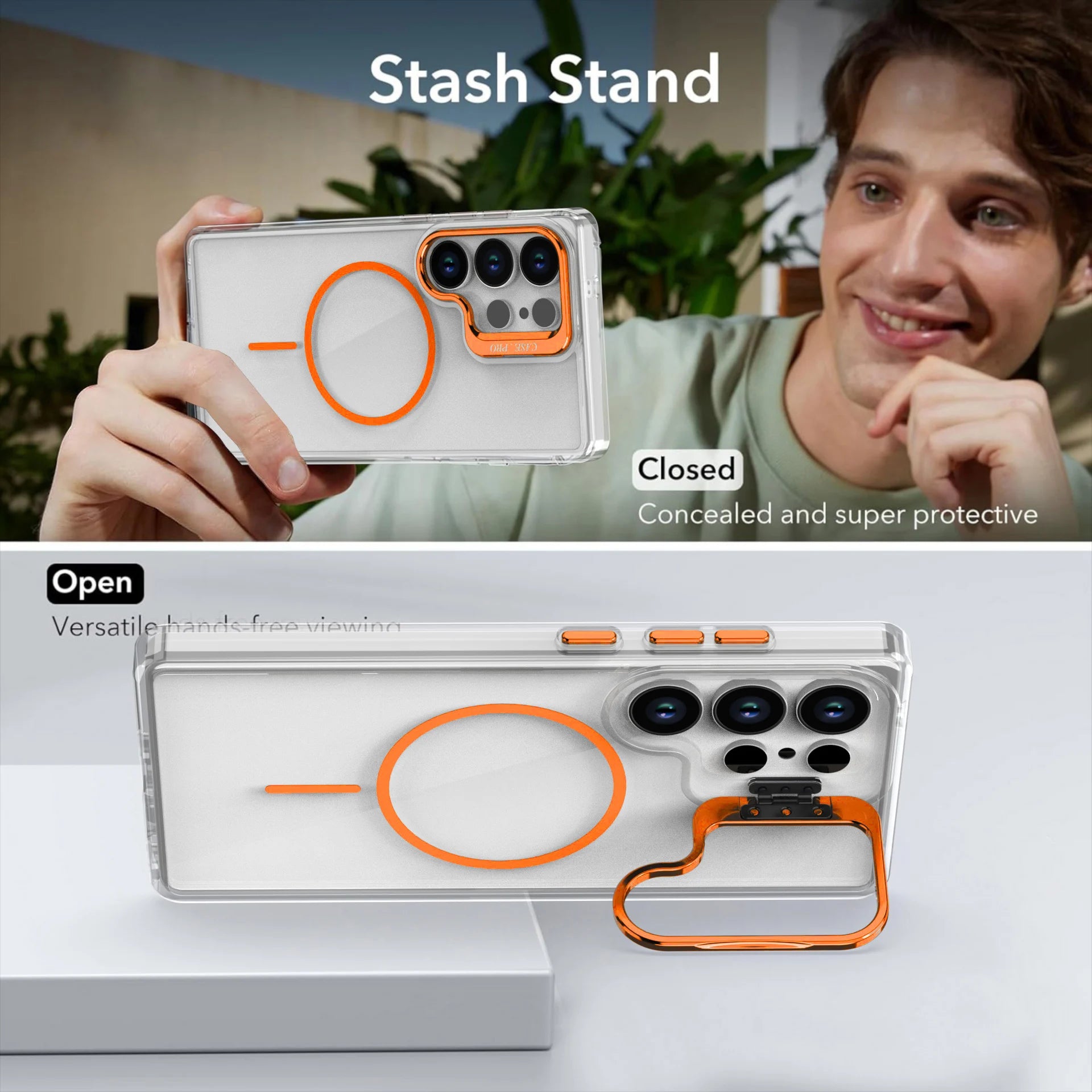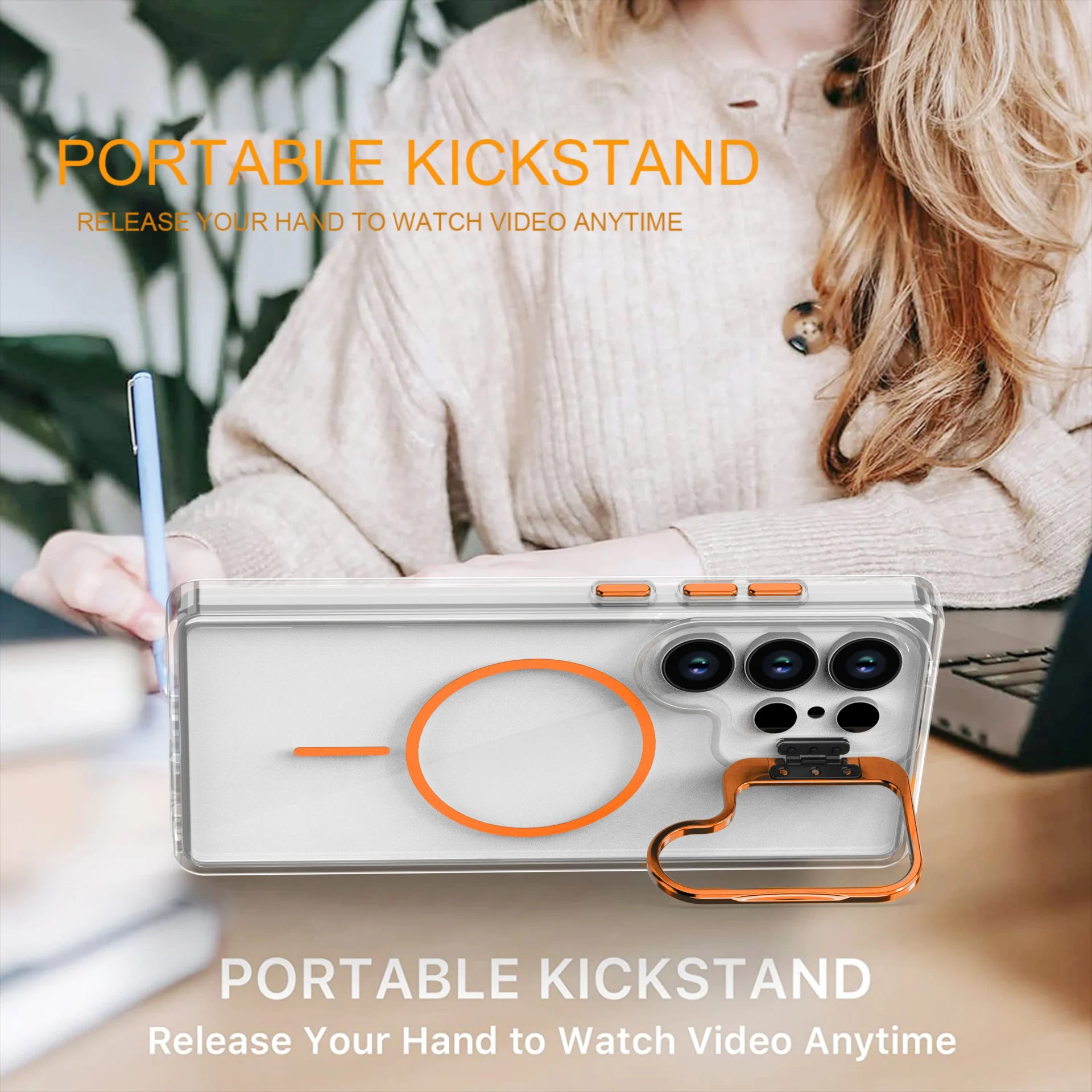 Model 5: Funda For Samsung Galaxy S24 Ultra Camera Frame Folding Bracket Magnetic Charging Transparent Phone Case Cover