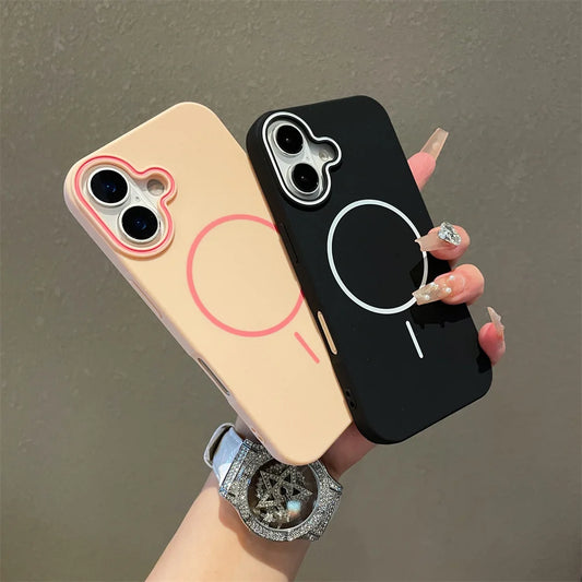 Ultrathin Simple Magsafe Case for iPhone 16 Pro Max 15Pro 14 Plus 13 12 11 Matte Hit Color Lens Wireless Charging Soft TPU Cover