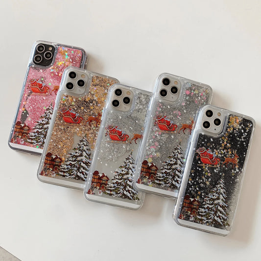 Christmas Liquid Dynamic Quicksand Glitter Phone Case For 16 Pro 15 Pro Max 3D Bling TPU Silicone Shockproof Cover