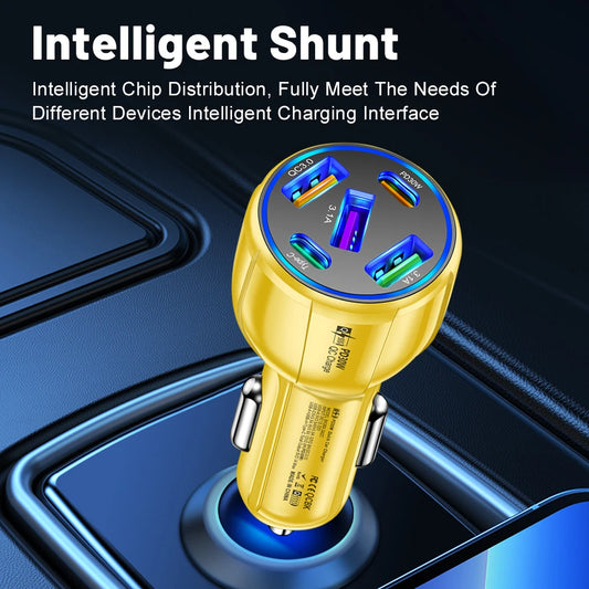81W Car Charger Adapter 6 in 1 Back Row with Clips Fast Charging Type C Slot Universal 81w 12v-24v Super Fast Car Charging