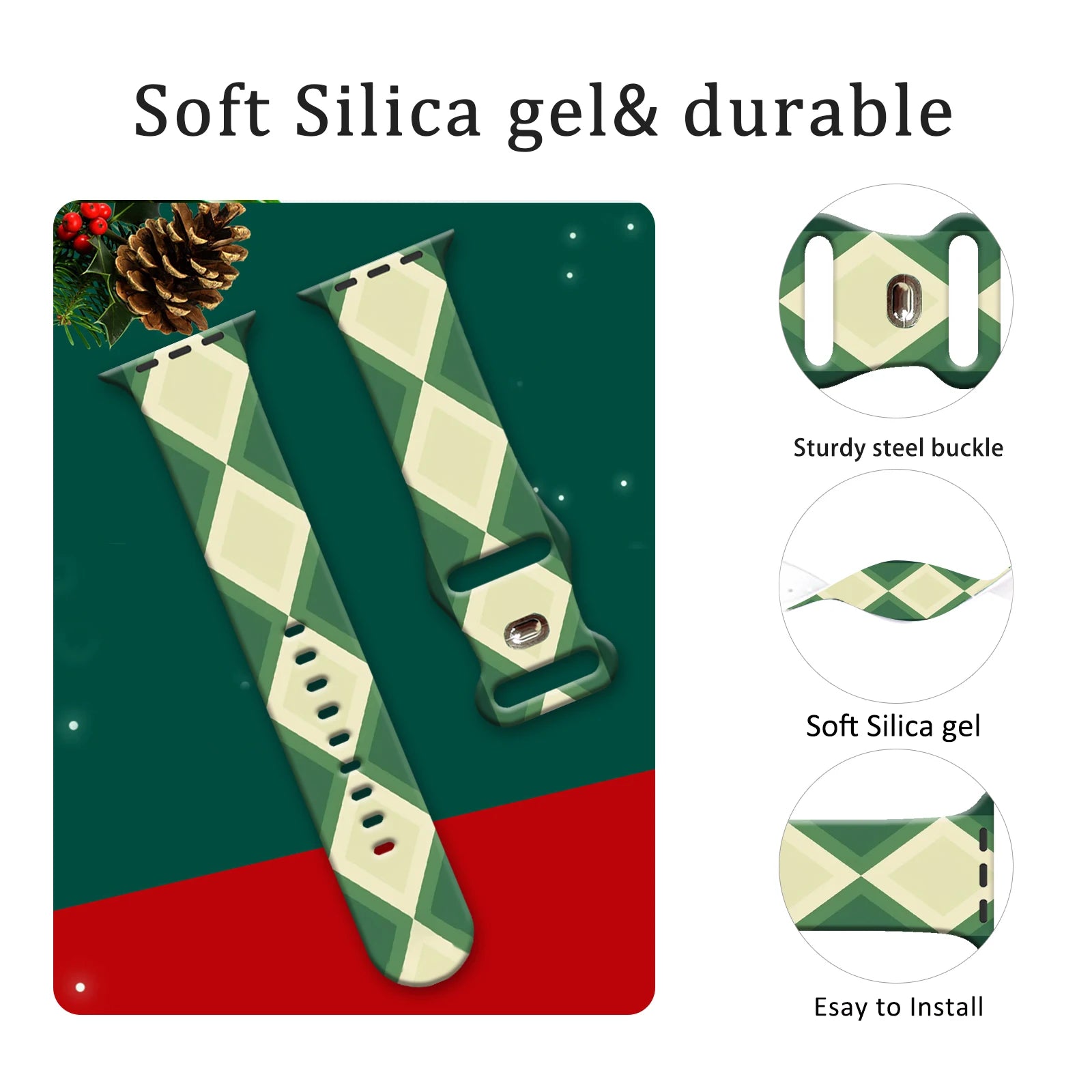 Christmas Diamond-Shaped Print Strap for Apple Watch 11 10 9 Silicone Band Replaceable Bracelet for iWatch 46/44/42mm Watchband