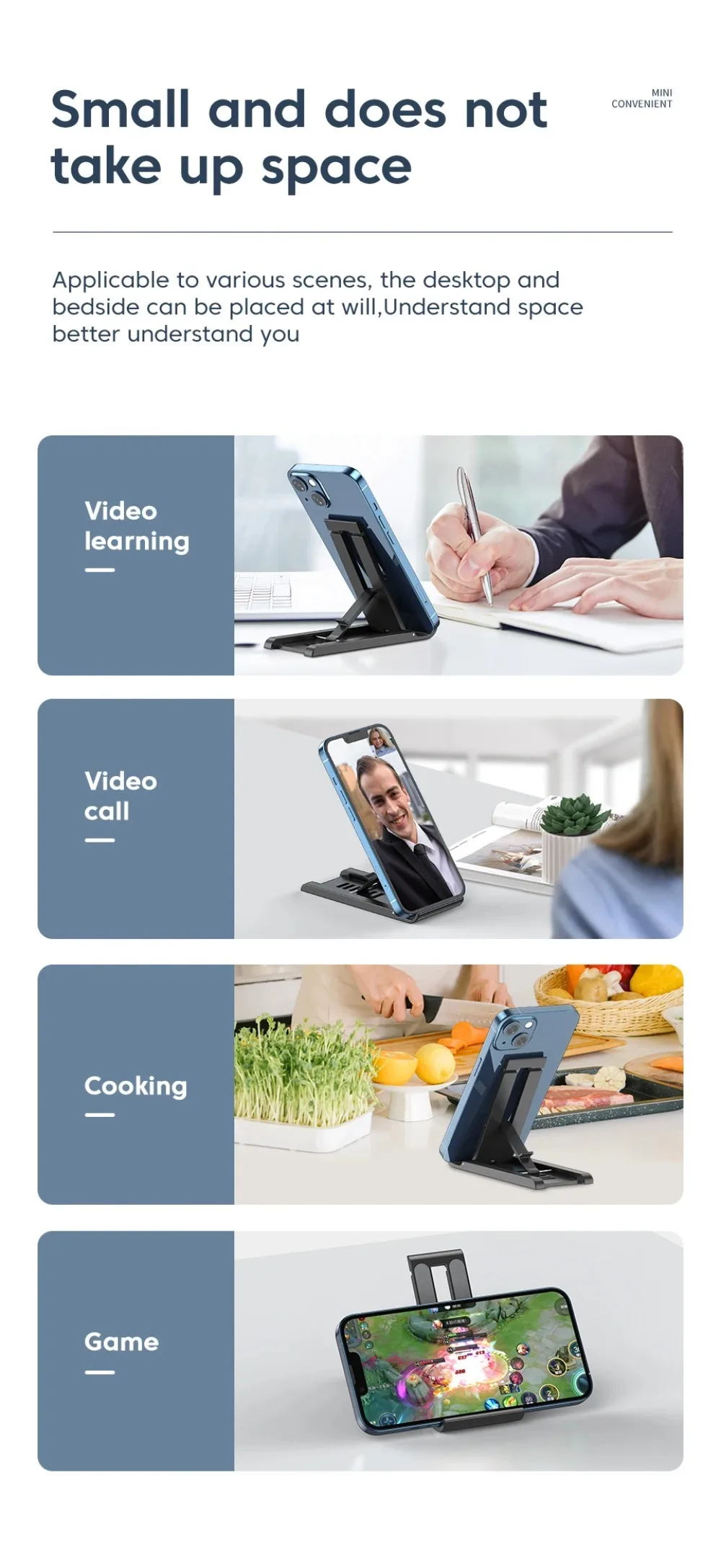 This universal phone stand is compatible with various devices, including iPad, iPhone, and Samsung tablets.