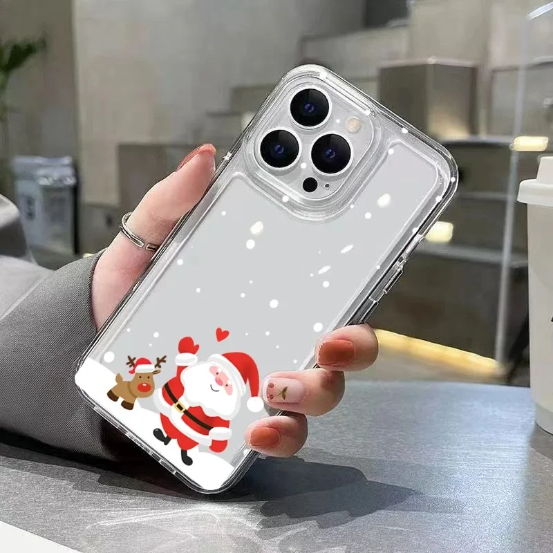 For iPhone 17 16 15 14 13 12 11 Pro Max Case Christmas Snowy Santa Claus Reindeer Cover For iPhone 16 15 14 Plus 16E 17 Air Case