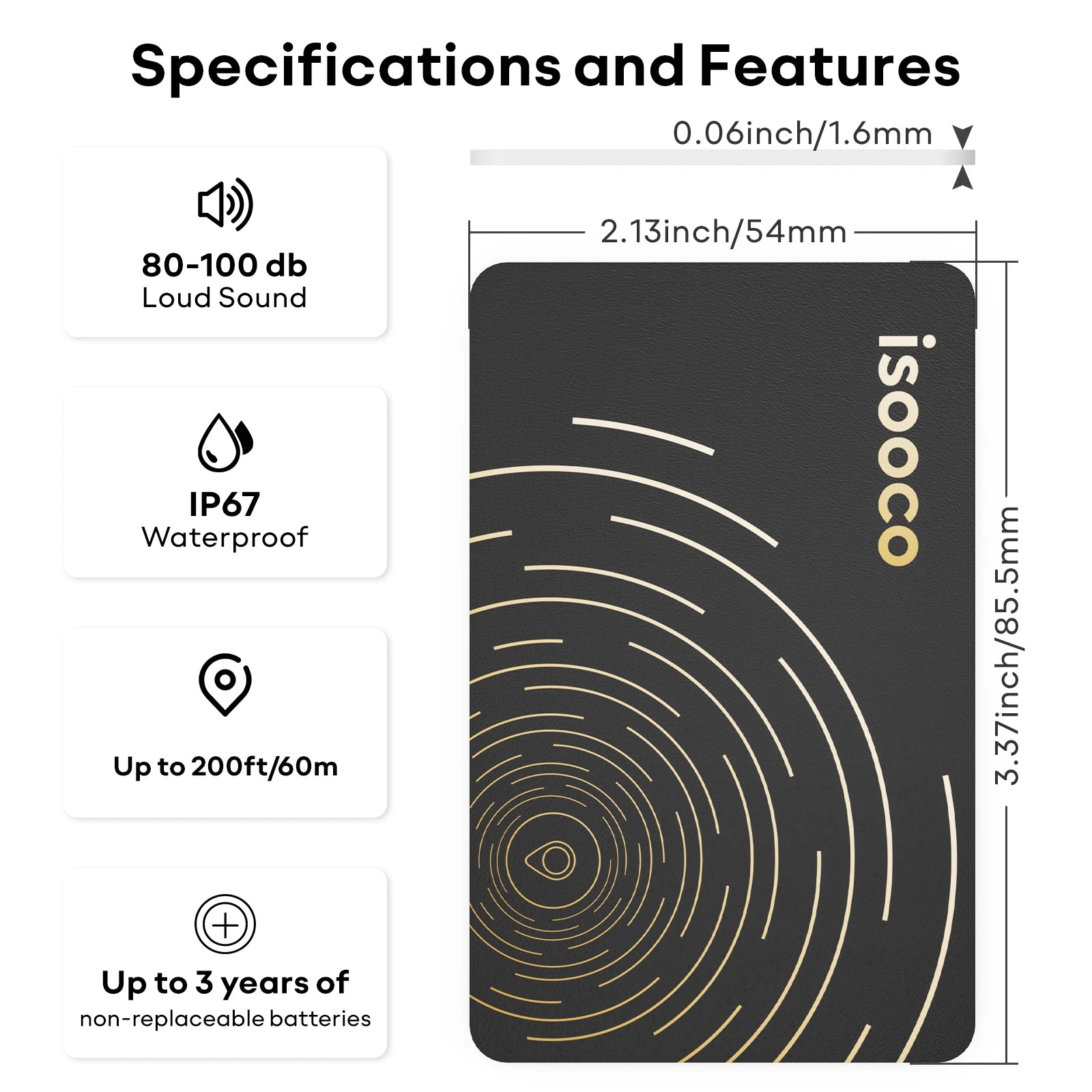 【IP67 Waterproof & Long-lasting battery】: The isooco item finder is both waterproof (with IP67 rating) and durable. It is powered by a Li-MnO2 lithium battery with a lifespan of over 2.5 years.