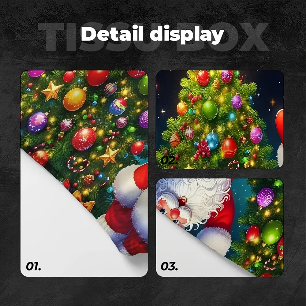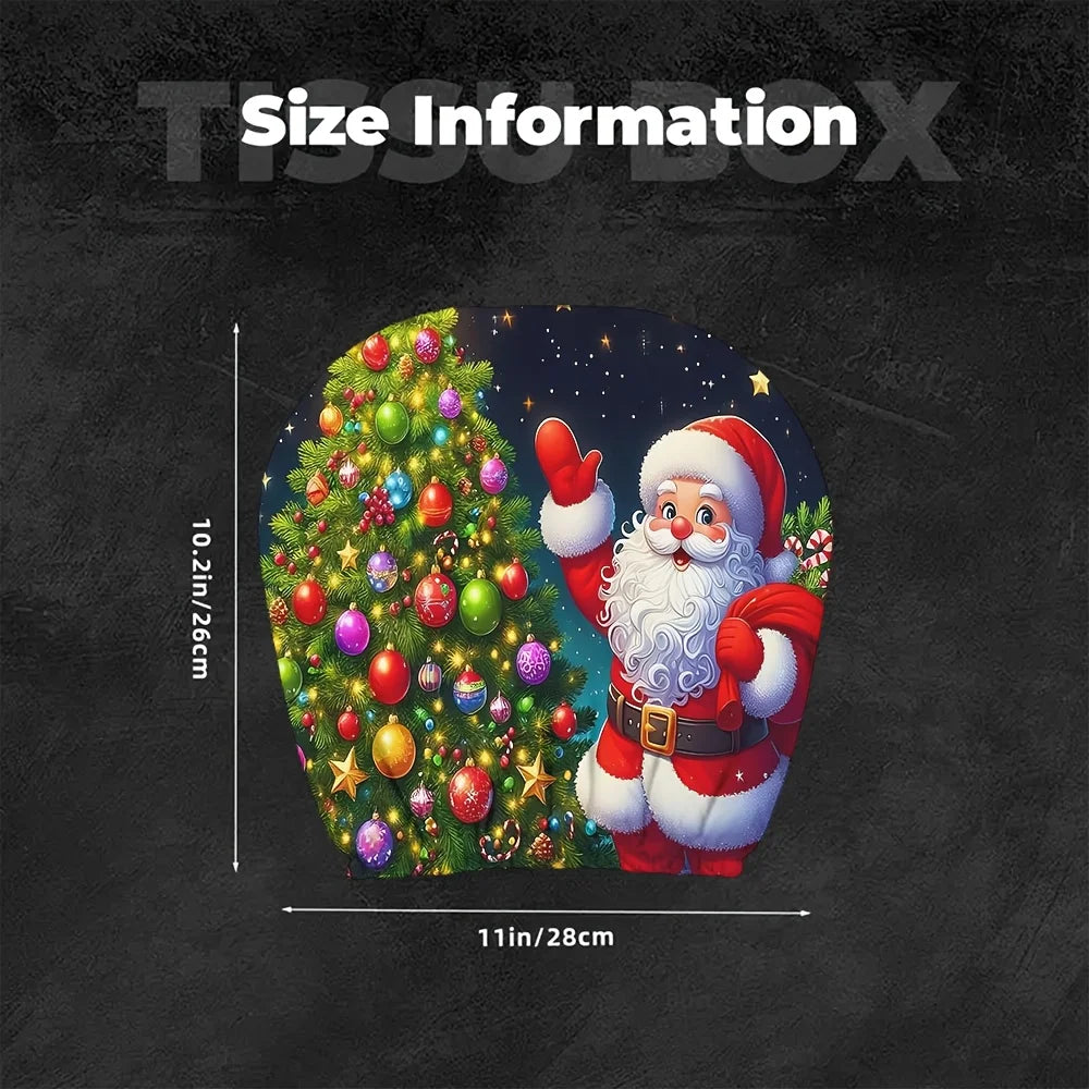 2 pieces of Christmas tree and Santa Claus patterned car headrest covers, holiday gifts, retractable and washable