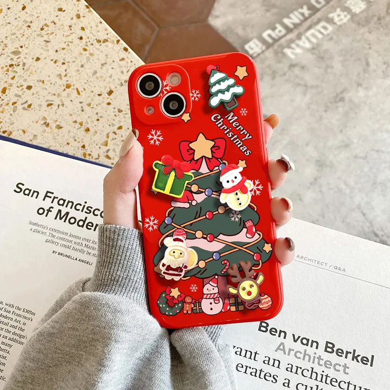 3D Christmas Tree Santa Claus Case For iPhone 14 12 13 11 15 Pro Max 12 13 Mini 7 8 Plus XS Max X XR SE Gift Socks Red Tpu Cover
