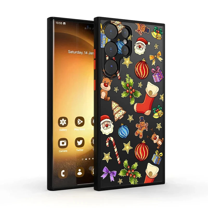 Back Phone Cover Case for Samsung Galaxy S23 Ultra S20 S21 S22 Plus S10 S9 S24 FE S25 Edge Cartoon Christmas Style Pattern