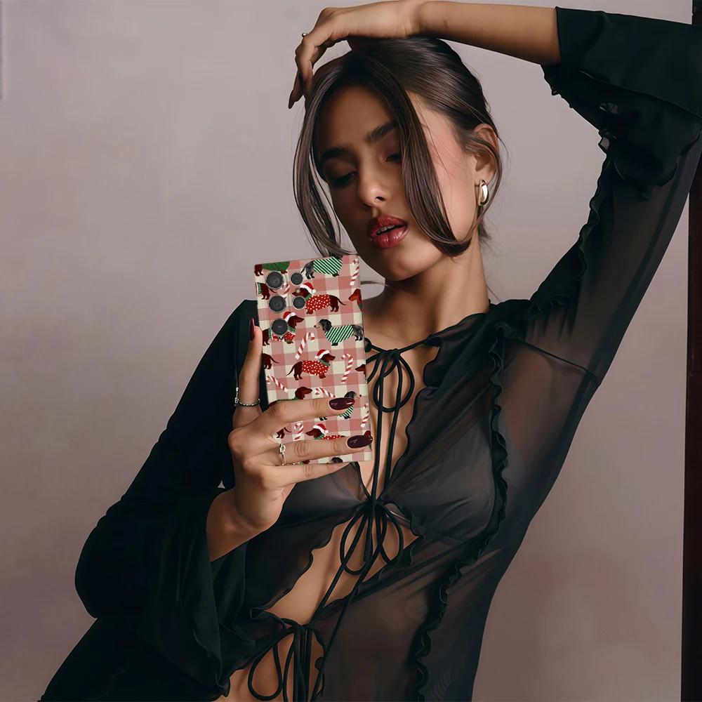 Christmas Dachshund Dog Phone Case for Samsung Galaxy S25 S24 S23 Ultra Plus A35 A55 Glossy HD Hard Cover Film Shell