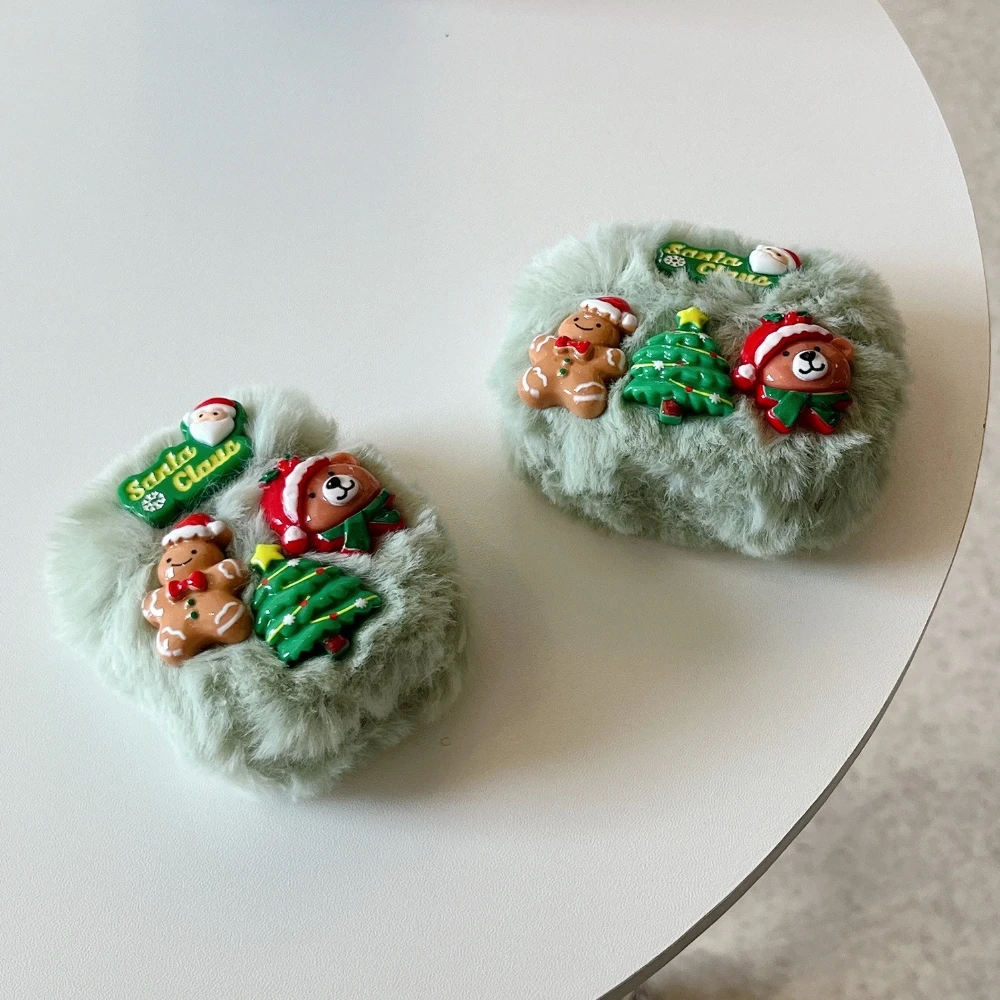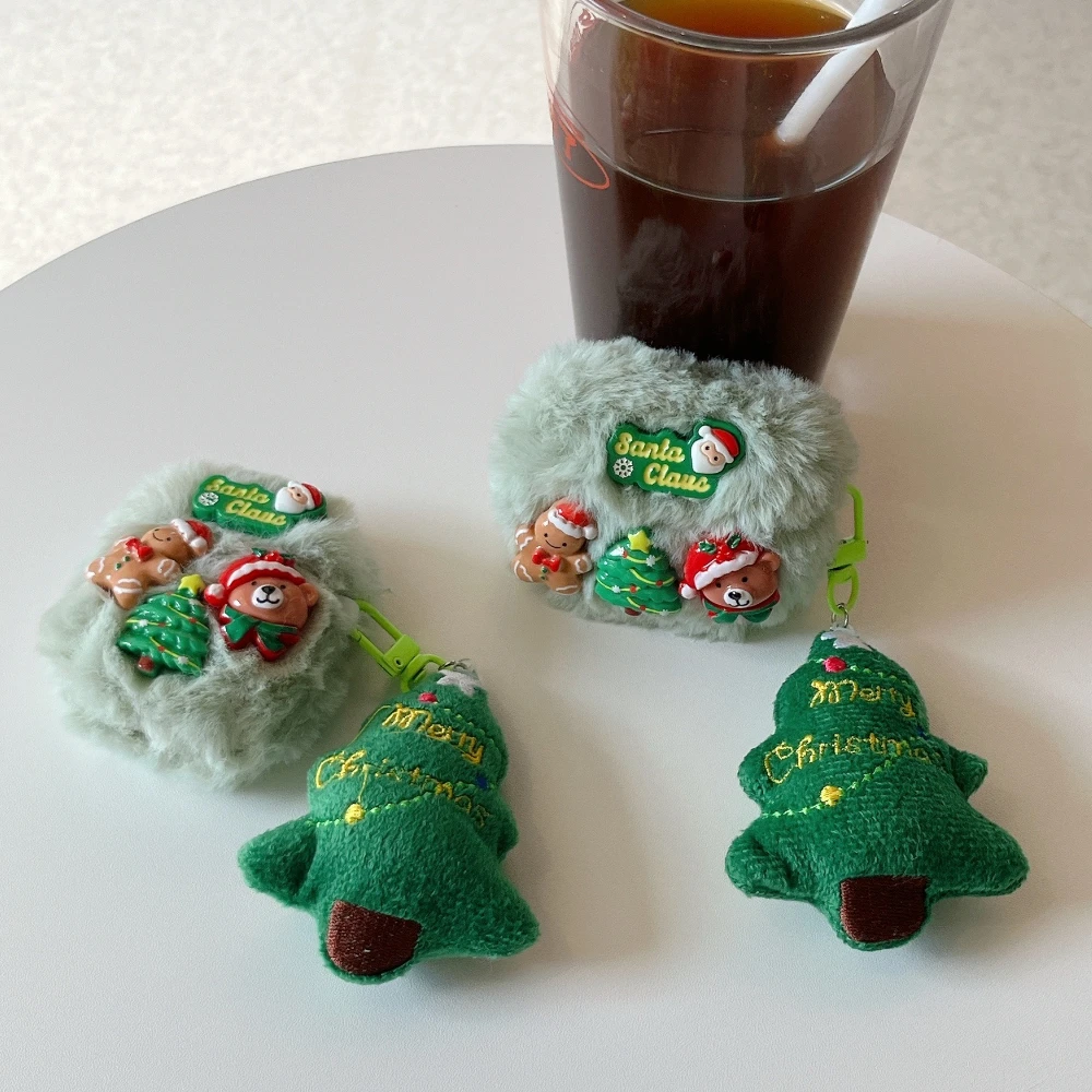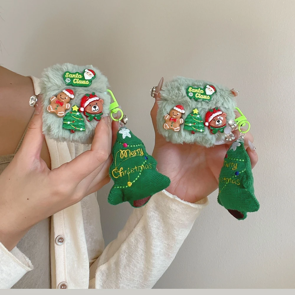 Cute 3D Xmas Cartoon Plush Earphone Case for AirPods 4 3 Pro 2 1, Merry Christmas Tree Pendant Bear Santa Claus Protective Cover