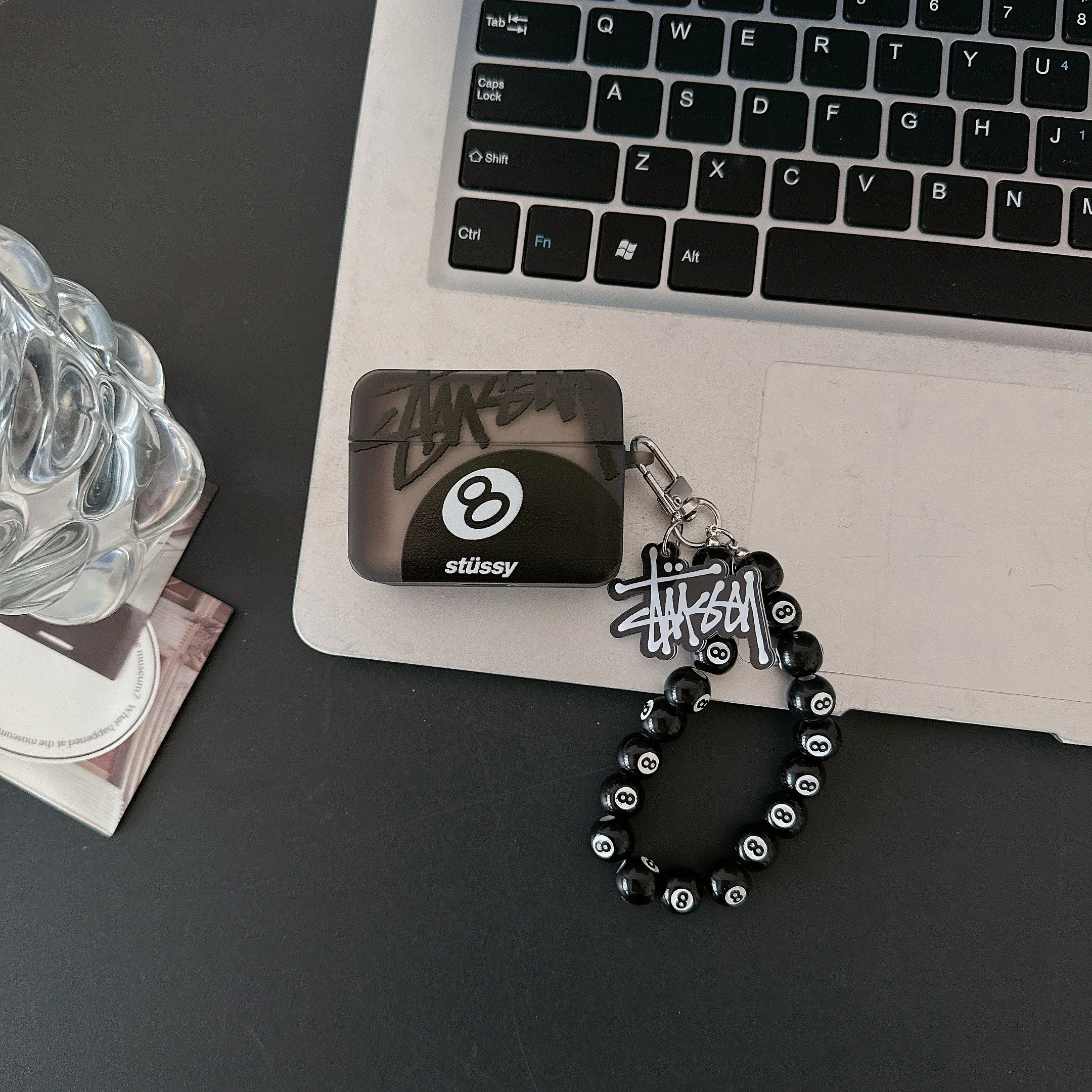 Earphone Transparent Black Square Strap Pendant Black 8 Bracelet Case For Apple Airpods 1 2 3 4 Pro 2 Headset Cover Keychain