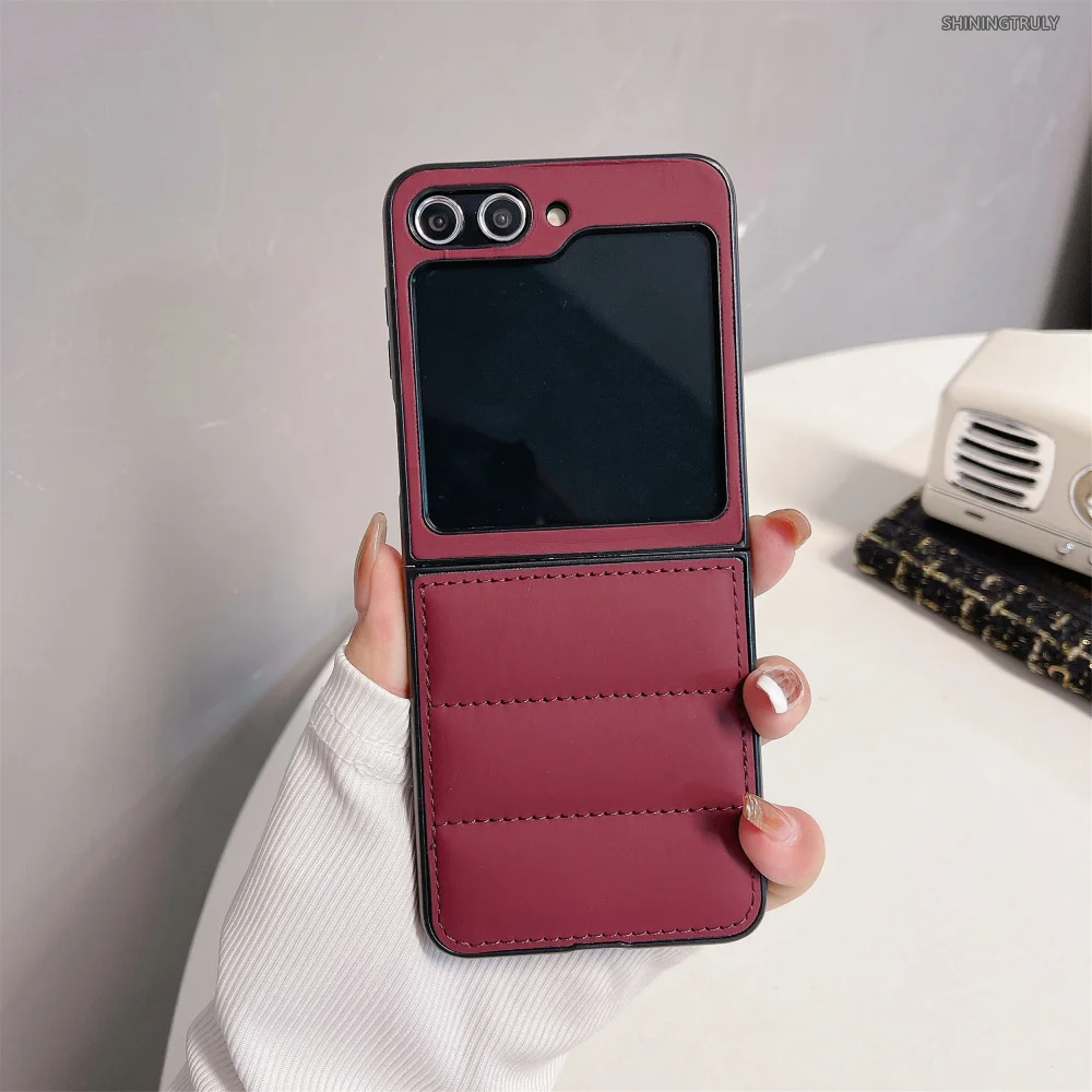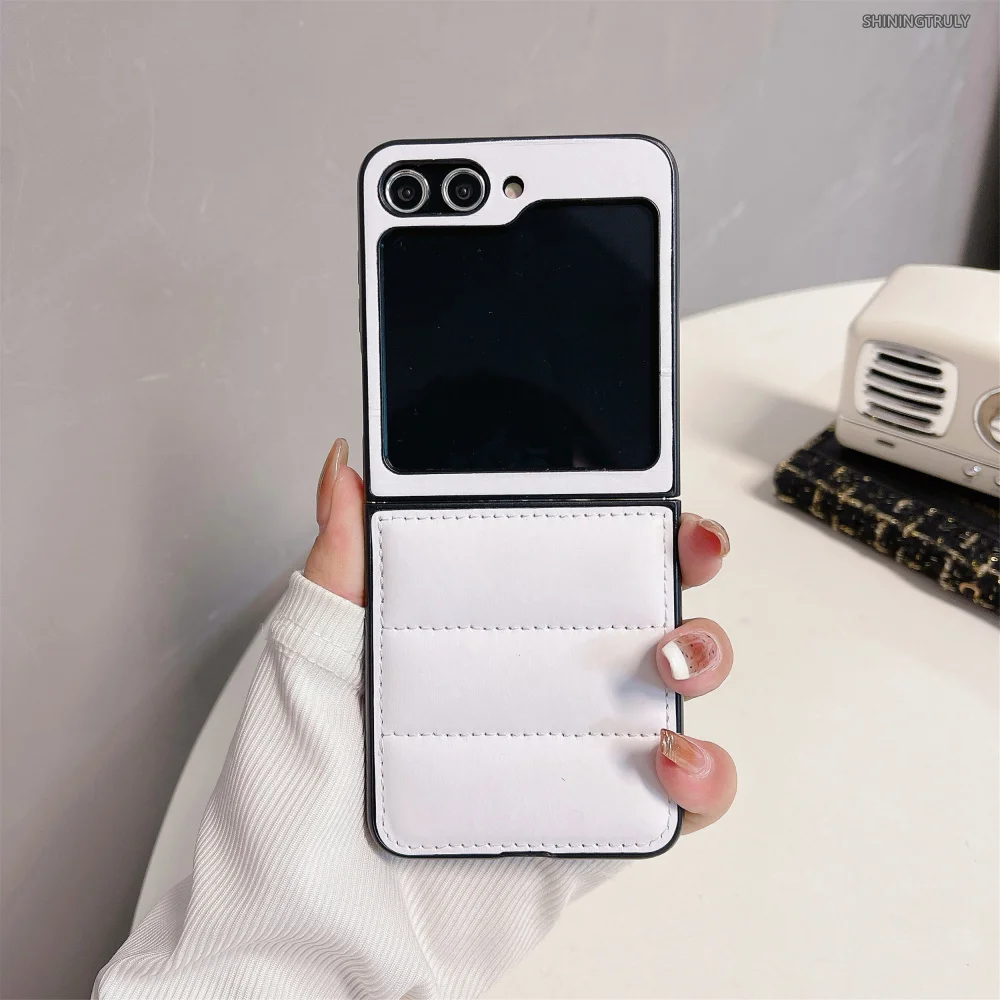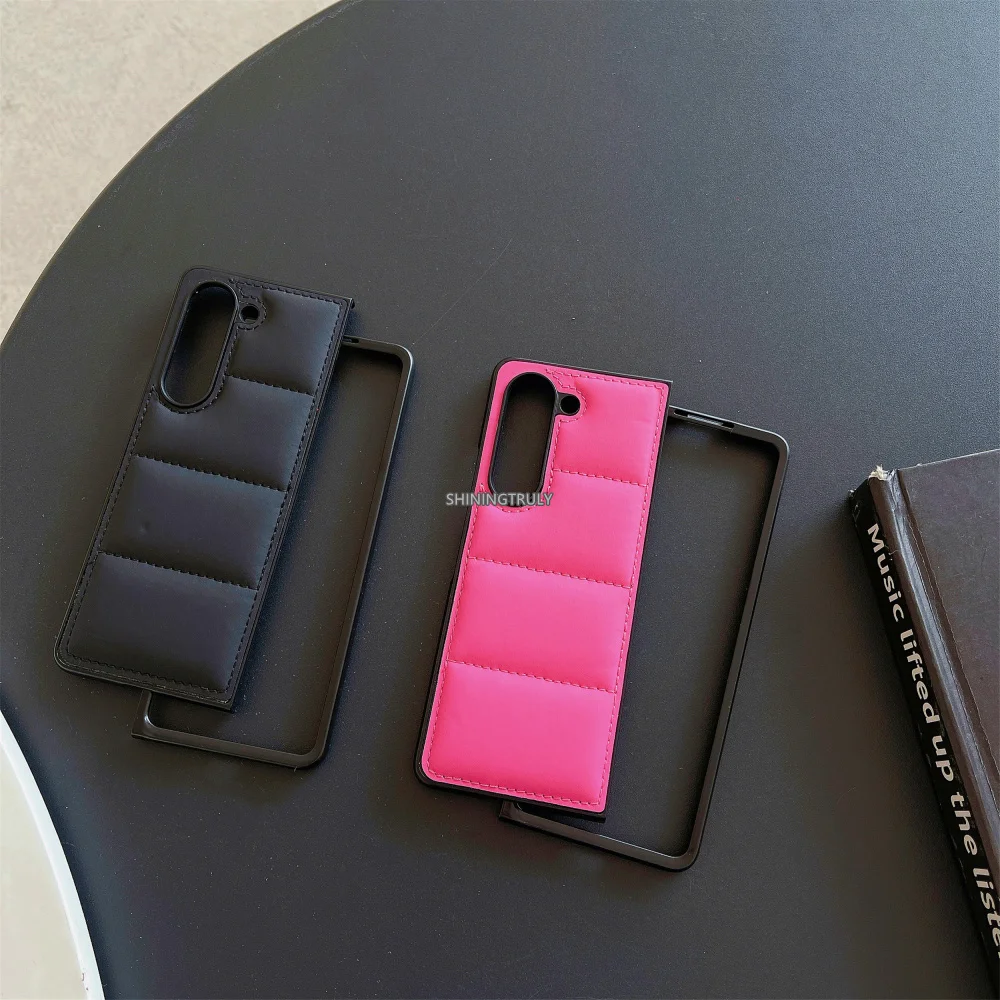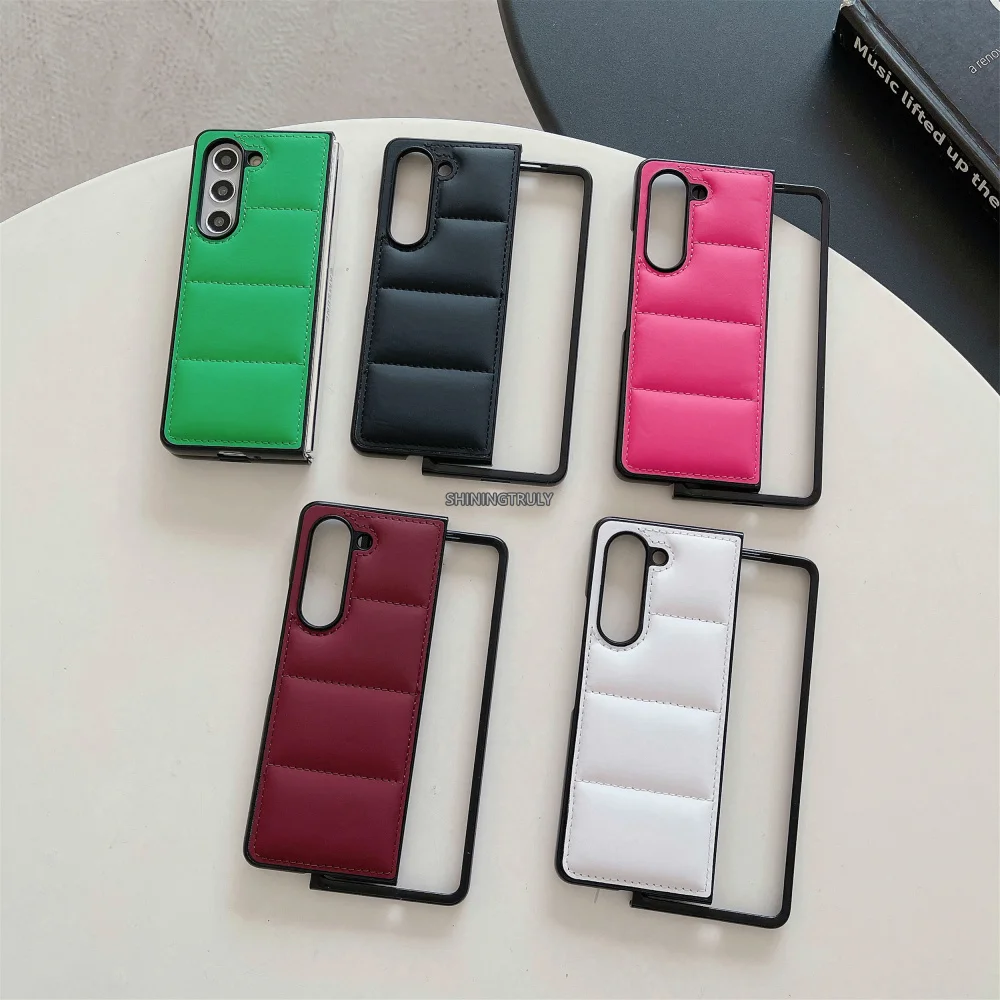 Fashion Down Jacket Air Cushion Case for Smausng Z Flip 6 5 Flip4 Flip 4 3 Fold 6 5 4 3 ins Leather Shockproof Cover for Samsung Galaxy Z Flip5