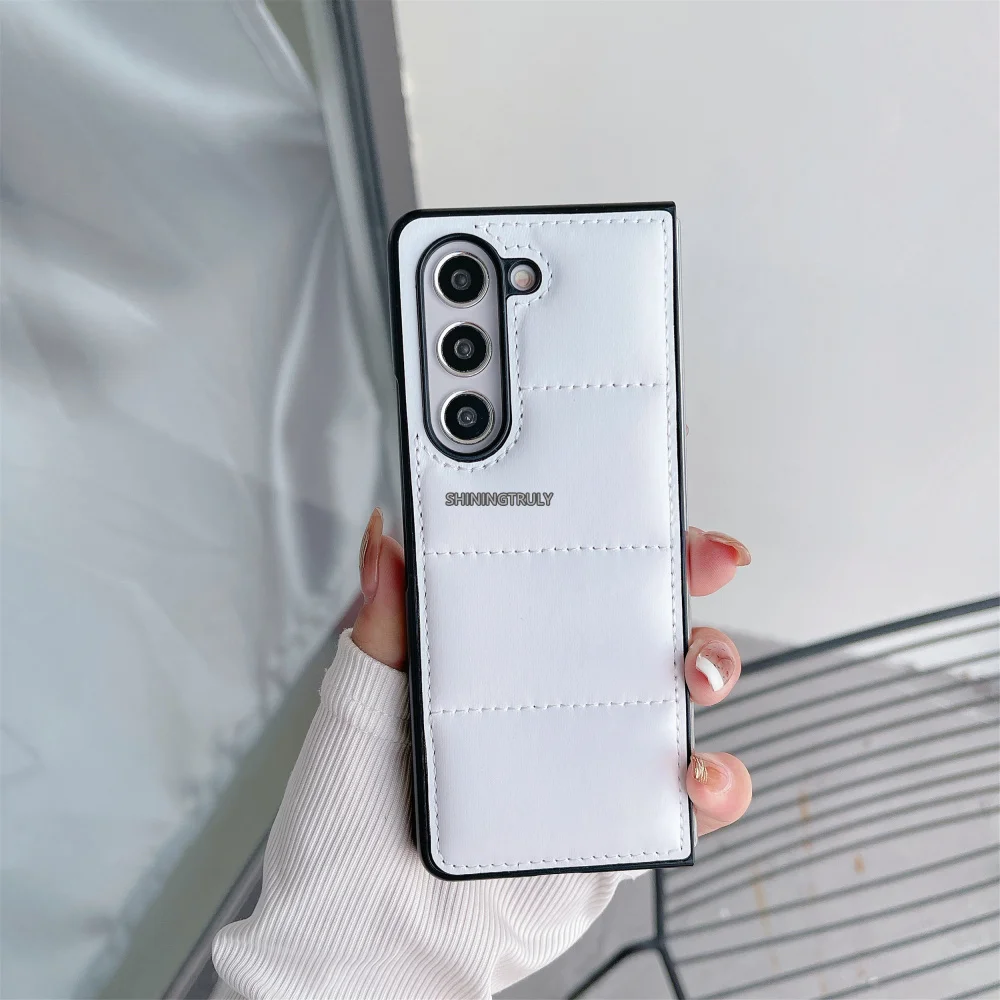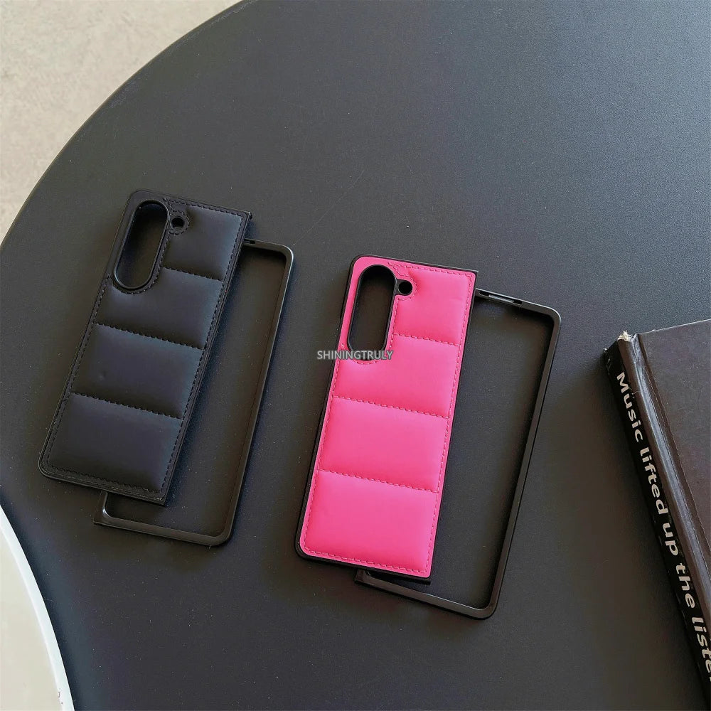 Fashion Down Jacket Air Cushion Case for Smausng Z Fold 6 Flip 6 Fold 5 4 3 ins Leather Shockproof Cover Galaxy Z Flip 5 4 3