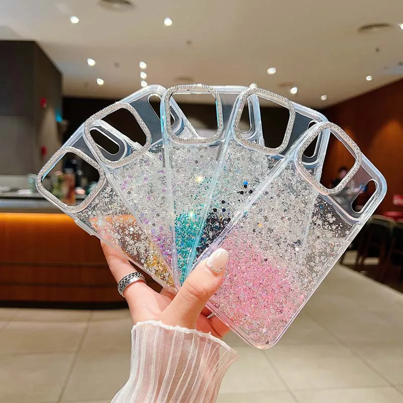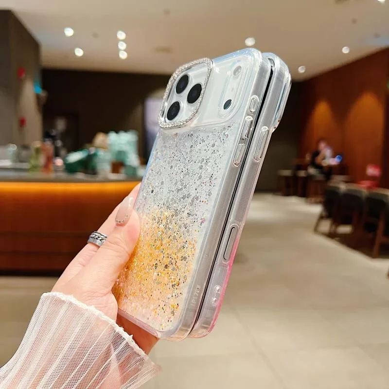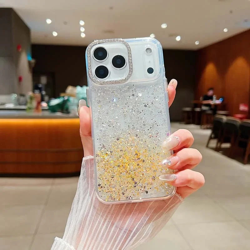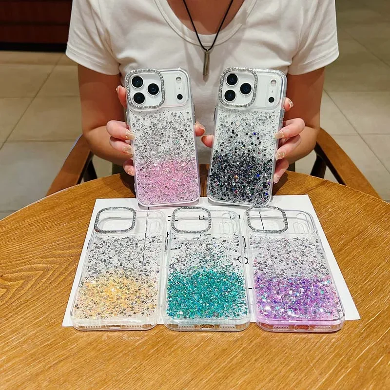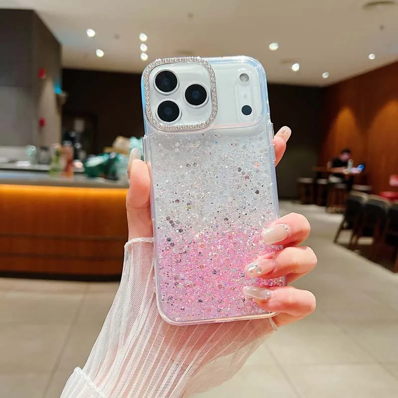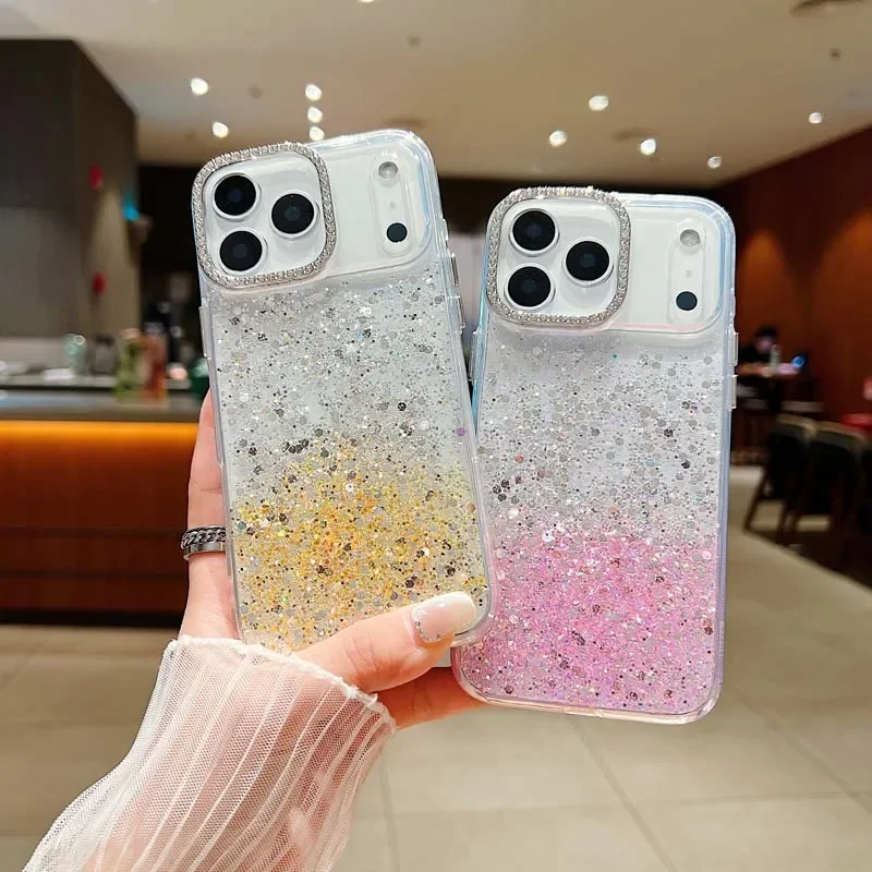 Fashion INS Uniqe Shiny Sequins Glitter Diamond Lens Frame Case For IPhone 17 Pro Max Air 16 Plus 15 14 13 Shockproof Back Cover