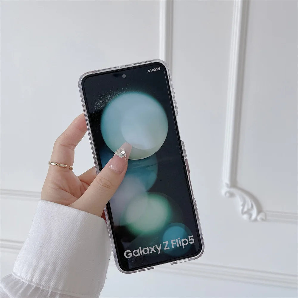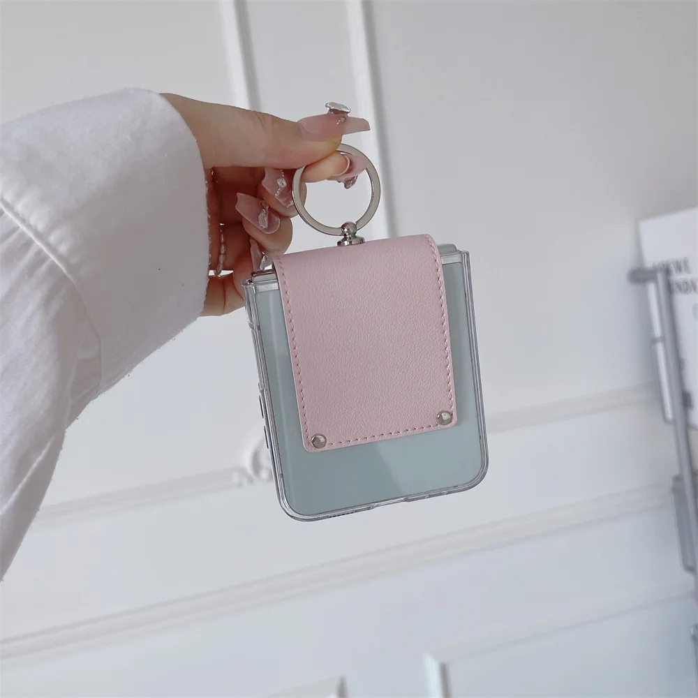 Fashion Ring Case for Samsung Galaxy Z Flip 6 5 5G 2024 New Fold Simple PC+Leather Cover Anti-knock Cases for Flip6 Flip5 Flip 5