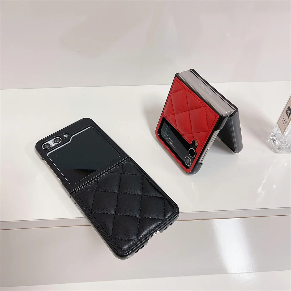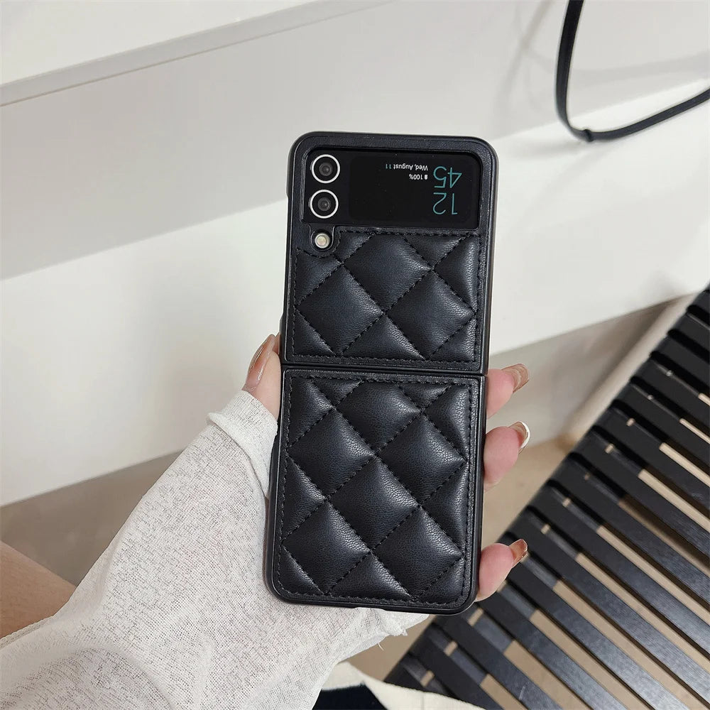 For Samsung Galaxy Z Fold 6 5G Luxury Leather Rhombus Case For Z Flip 5 4 3 Z Fold 6 5 4 3 Pure Color CC Style Protection Cover