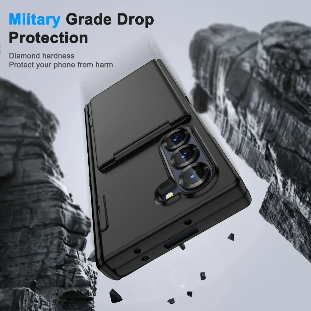Flip Card Slot Holder Kickstand Phone Case For Samsung Galaxy Z Fold 7 6 5 Fold7 Fold6 Fold5 5G Folding Bracket Transparent Shockproof Matte PC Cover