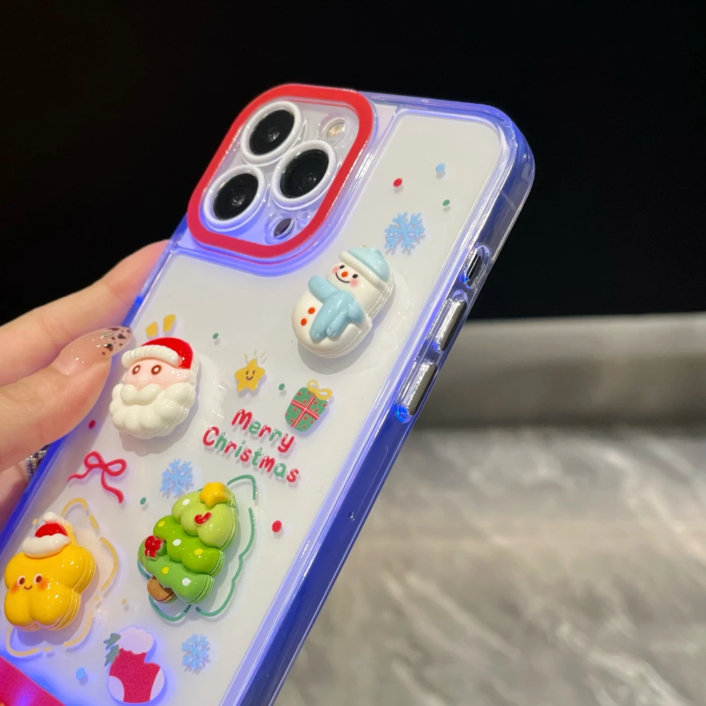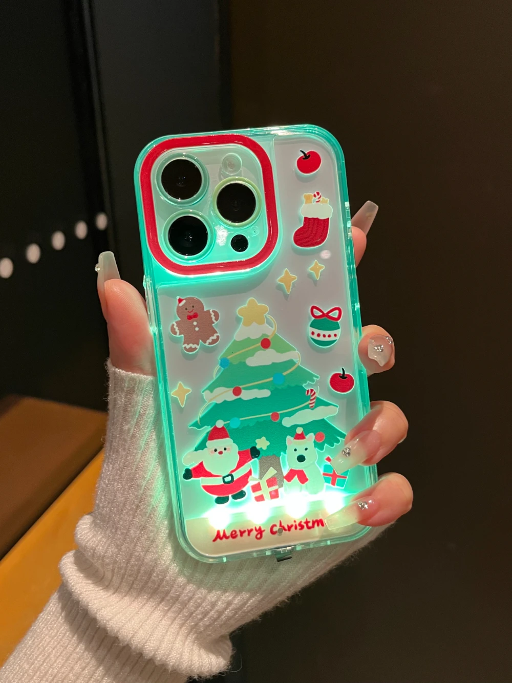 Luminous Call Light Up Flash Christmas Snowman Santa Claus Phone Case For iPhone 15 13 12 11 14 16 17 Pro Max Plus 17AIR Cover