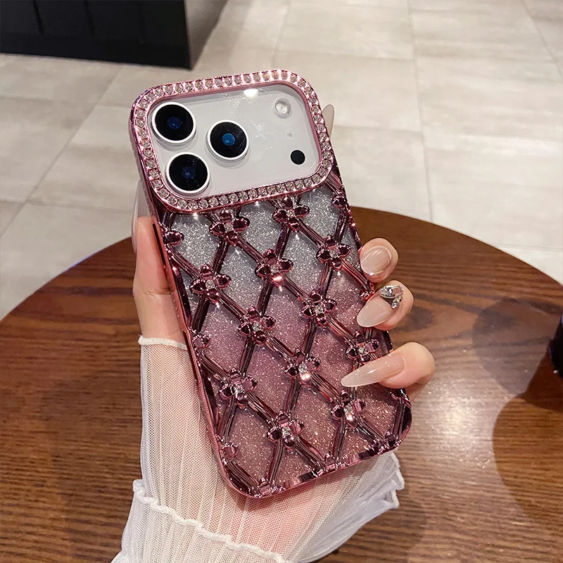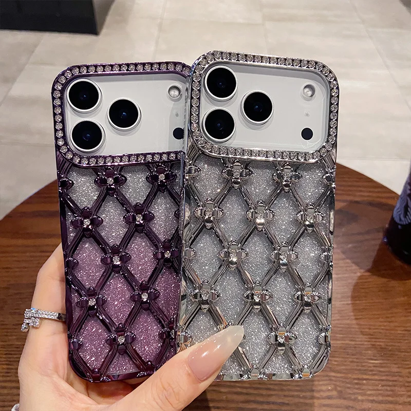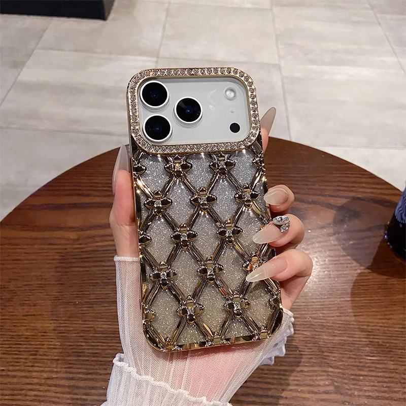 Luxury Glitter Diamond Gold Electroplated Case for IPhone 16 17 Air 12 13 14 15 Pro Max Camera Protection Cases Cover