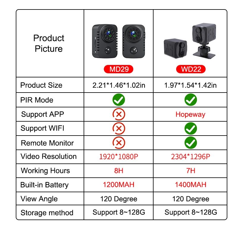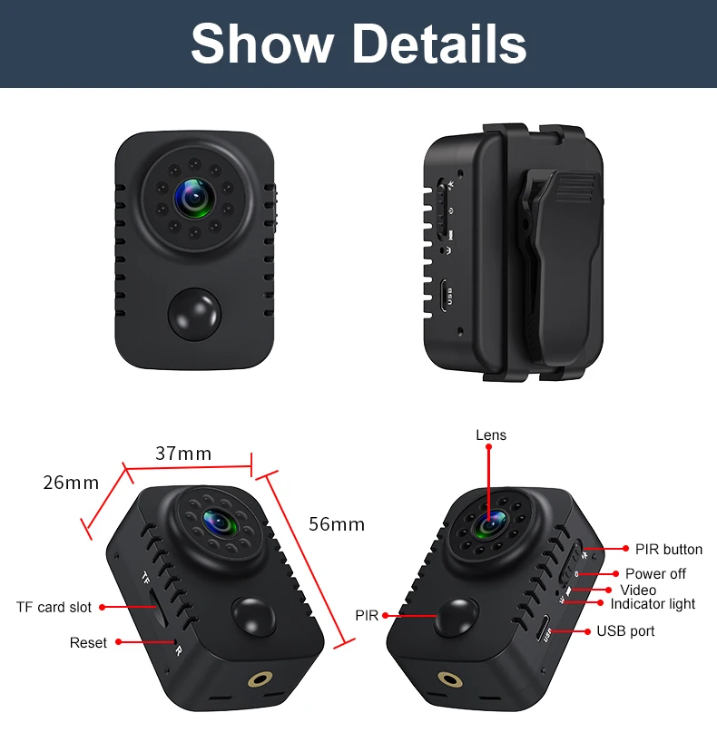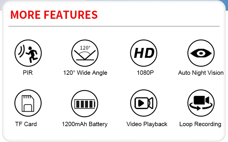 1.Storage:Support up to 128GB TF card(Memory card is not included)