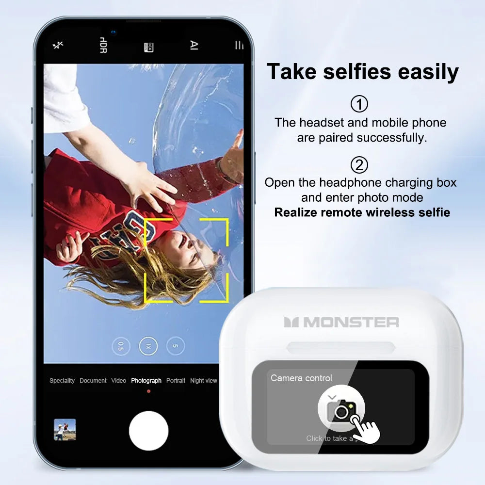 MONSTER Tws Wireless Bluetooth Earphones HD Stereo Sound Earbuds Headphones Charging Box LCD Touch Display Sports In-Ear Headset