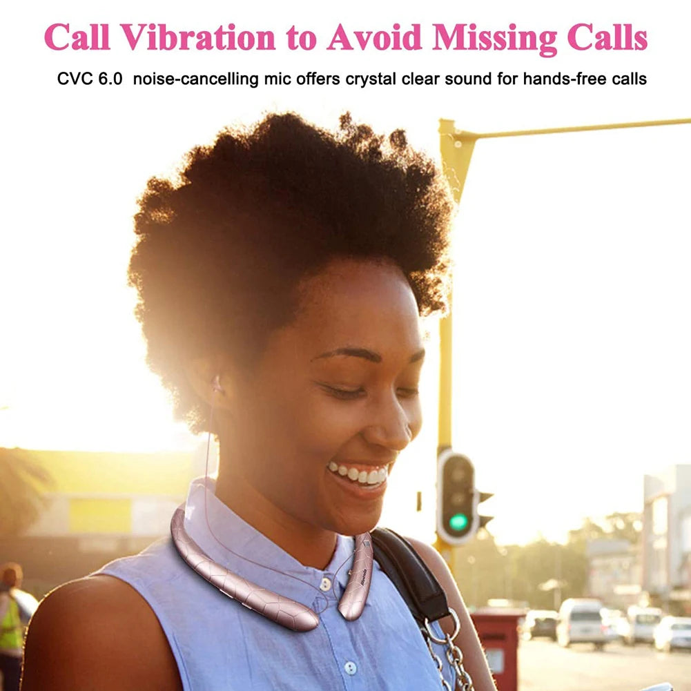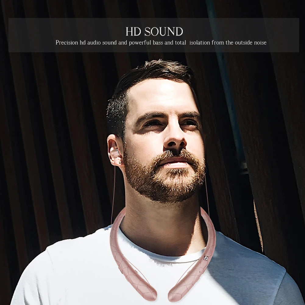 Neckband Headset Waterproof Workout Headphones Bluetooth-Compatible5.0 Retractable Earbuds with Mic for iPhone Samsung LG