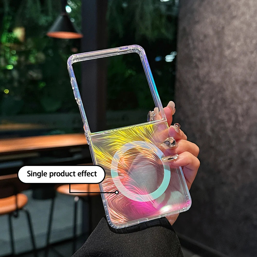 New original for Samsung Galaxy Z Flip7 foldable screen luxury feather gradient back cover anti-drop magnetic mobile phone case.