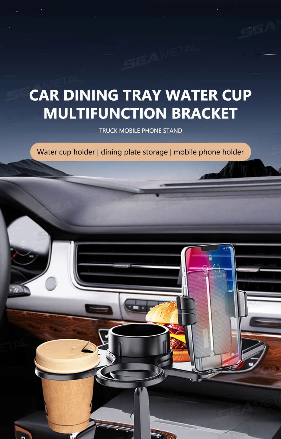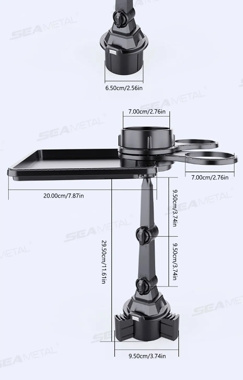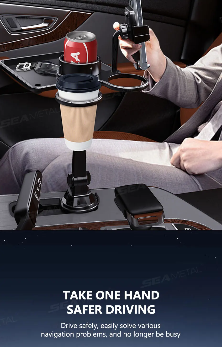 SEAMETAL Car Cup Holder Expander Tray With Dual Cup Holder Organized Table Food Car Tray Portable 360° Adjustable Drink Stand