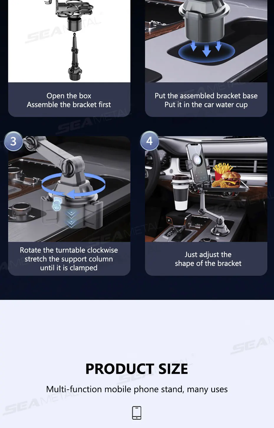 4.Mounting Made Easy: Effortlessly set up and disassemble this car cup holder expander with a food tray for organization in your vehicle's cup holder, saving you time and providing efficiency