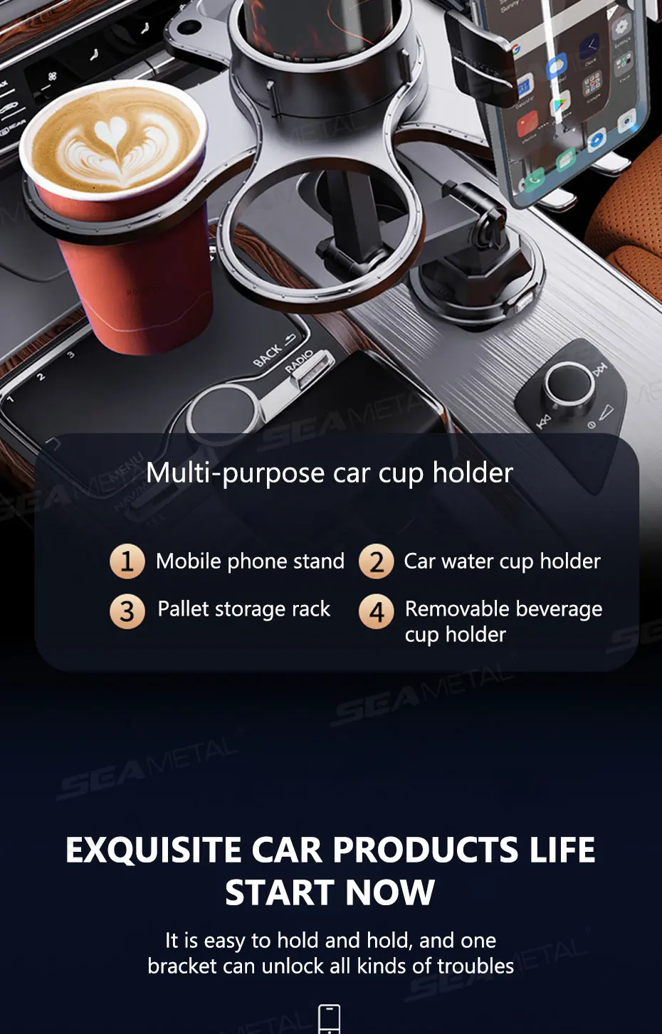 5.Wide Application Range: Commuting cup holder tray with phone mount maximizes functionality; suitable for road trips, picnics, and outdoor activities, catering to various needs
