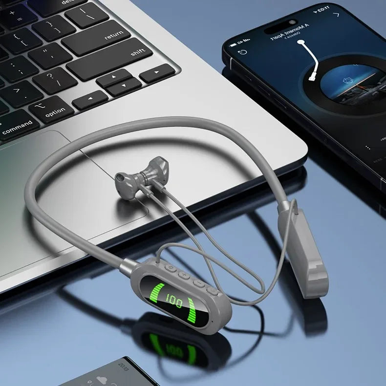 Wireless Neckband Earphones BT 5.3 20H Playtime Water Resistant Noise Cancelling LED for Sports Gaming Phone PC Workout