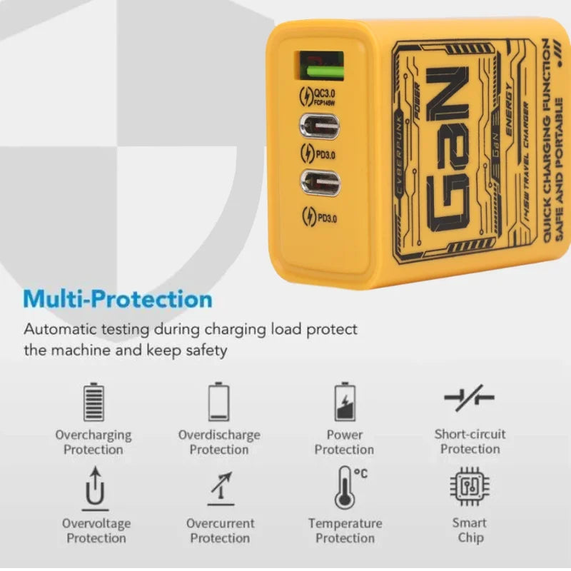 Bright and modern design: This charger features a bright yellow color and a stylish design, not only providing excellent performance, but also adding a trendy touch to your charging station. Its modern appearance can complement any interior decoration.