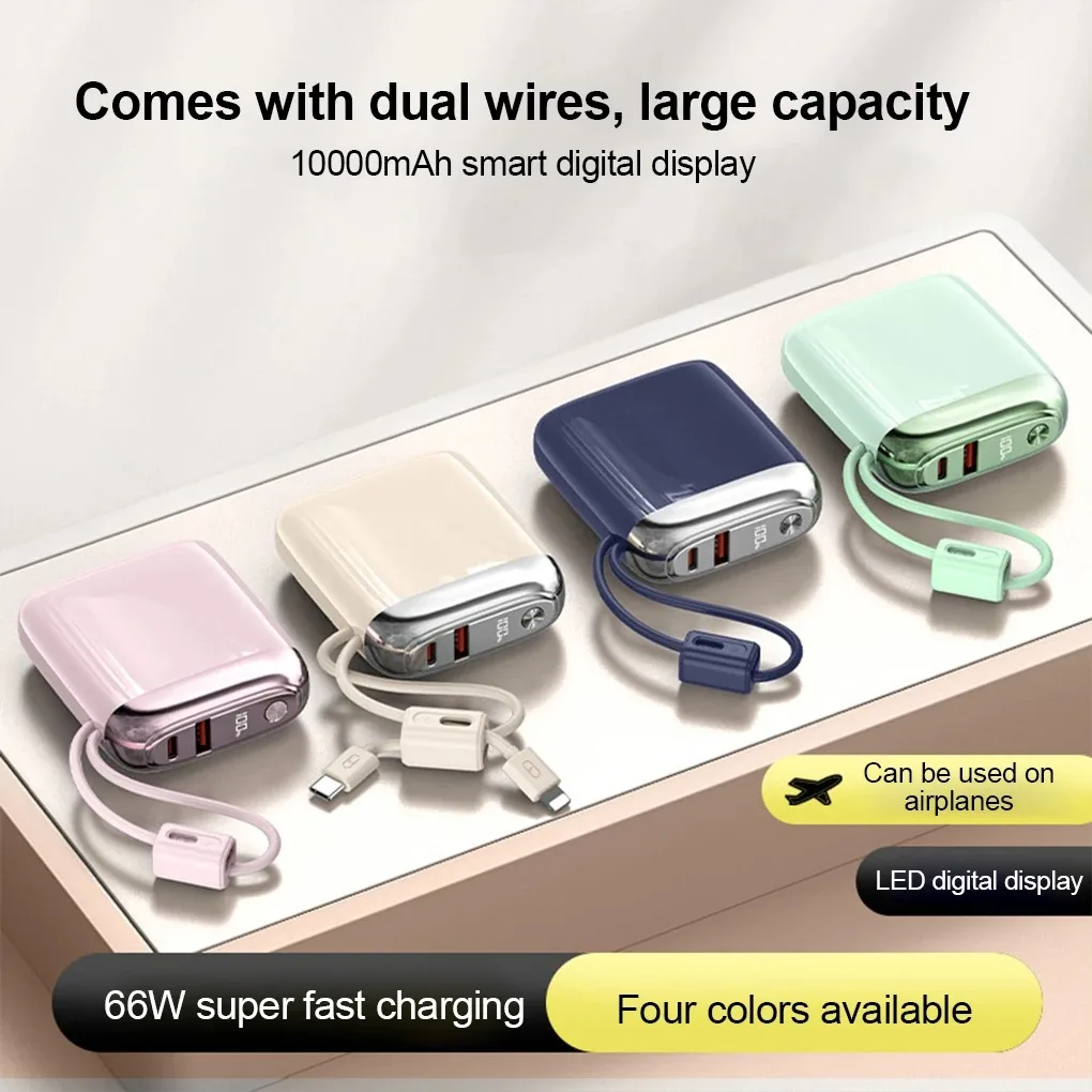 10000mAh Mini Power Bank 66W Super Fast Charging Built-in USB-C Cable PD3.0/QC3.0 3C Certified Portable Charger Travel-Friendly