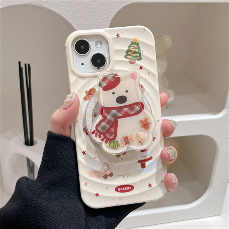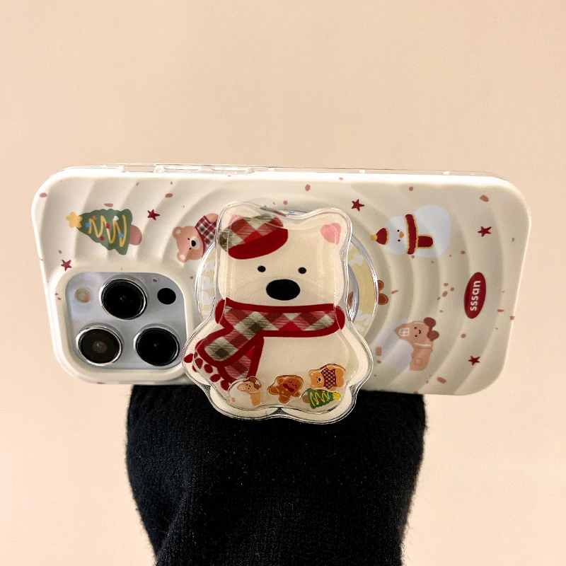 Korean Cute Quicksand Christmas Puppy Magnetic Holder Grip Tok Griptok Phone Stand Support For iPhone For Pad Magsafe Smart Tok