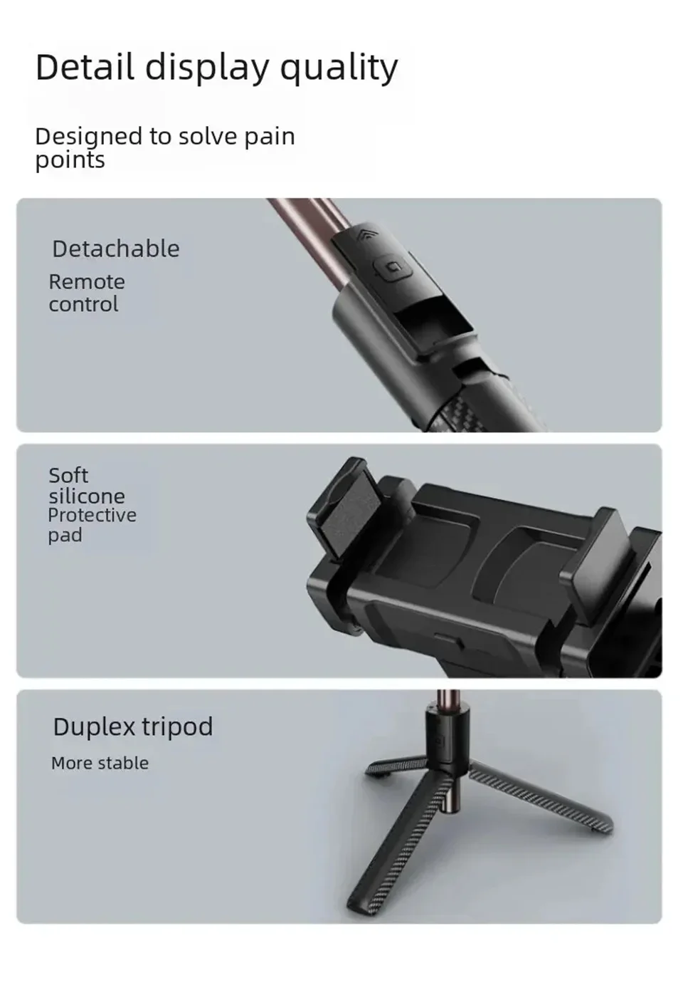It can also be converted very easily into a selfie stick, phone stand and phone tripod. It's perfect for taking photos and videos in different scenarios, whether you're traveling, vlogging, live streaming, or taking family photos.