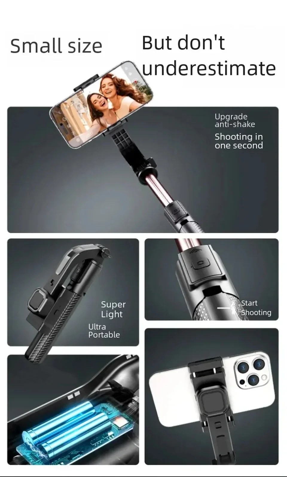 With this stabilizer, no more blurry videos, the anti-shake technology allows you to shoot incredibly stable & smooth multi-scene shots.