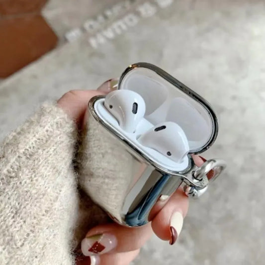 Electroplate Earphone Case For Airpods 1 2 3 Pro 2 Protective Cover For Apple Airpods Pro Case Silver TPU With Keychain Box
