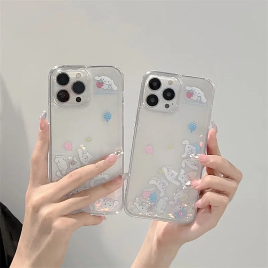 INS Kawaii Cinnamoroll Quicksand Bling Phone Case For iPhone 16 15 14 Pro Max 13 12 11 X XS Max XR Lovely Anti-drop Cover