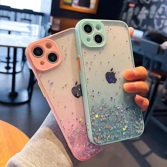 Luxury Sparkling Glitter Clear Case For iPhone 16 15 Pro Max 14 13 12 11 X XR XS 7 8 Plus Shockproof Transparent Soft Back Cover