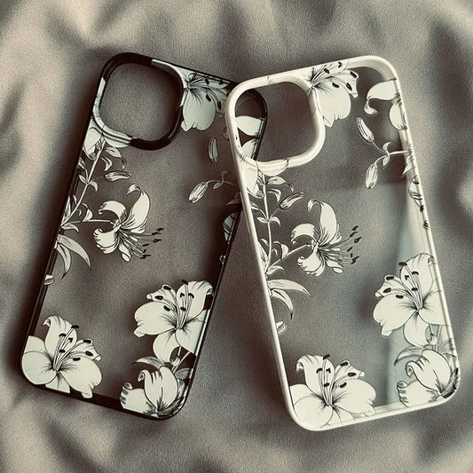 INS Retro White Flowers Phone Case For iPhone 15 Pro 14 Pro Max 12 11 13Mini X XS XR 7 8Plus Floral Shockproof Clear Cover Shell