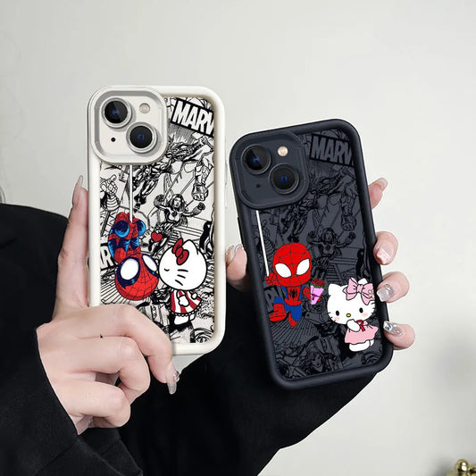 Comics Art Hello Kitty SpiderMan Phone Case For iPhone 15 14 13 12 11 Pro Max 8 7 Plus X XS SE XSMax Liquid Eye Shockproof Cover