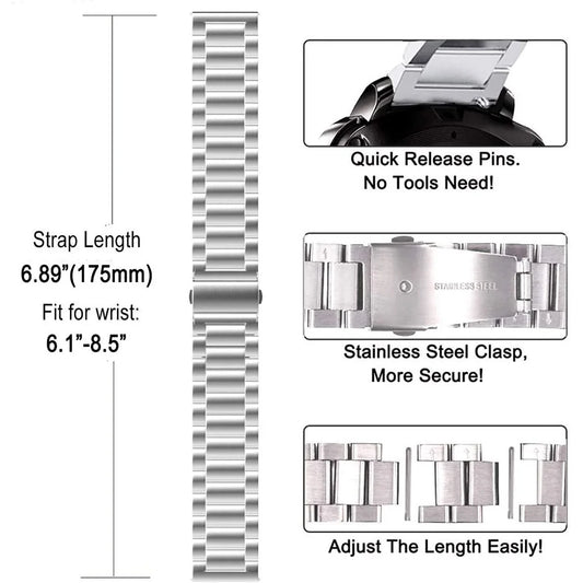 18mm 20mm 22mm Watch Band Stainless Steel Watch Strap, Quick Release, Replacement Compatible With Smartwatch, Traditional Watch