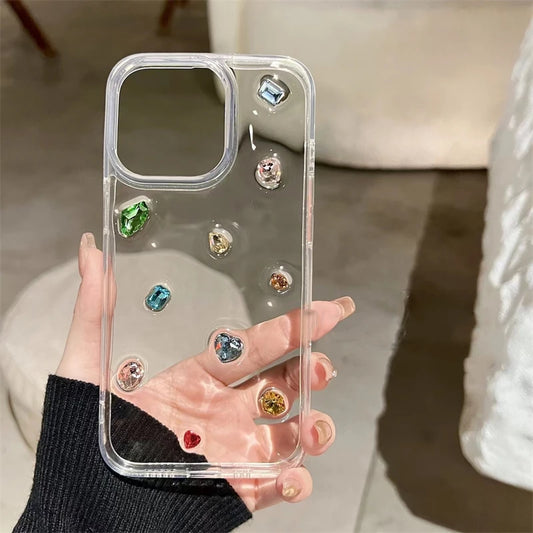 Luxury Glossy Diamond Clear Epoxy Case For iPhone 15 14 13 12 11 Pro Max X XS XR 7 8 Plus SE 3 Glitter Rhinestone Silicone Cover