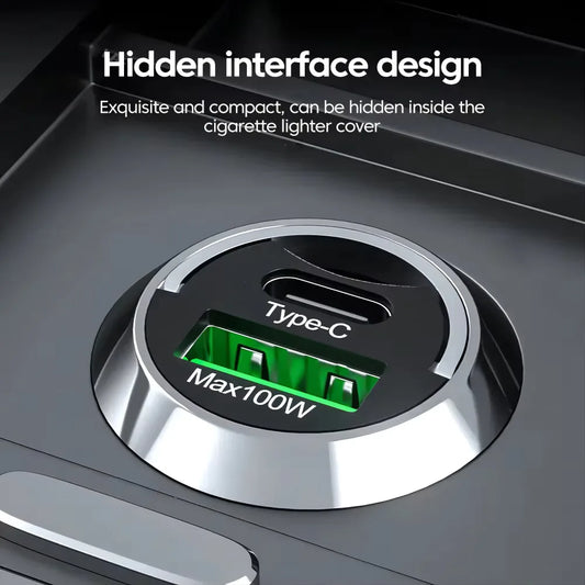 Mini 100W PD QC Pull Ring Fast Charging Car Charger USB C Car Phone Charger Adapter For iPhone Xiaomi Samsung Huawei